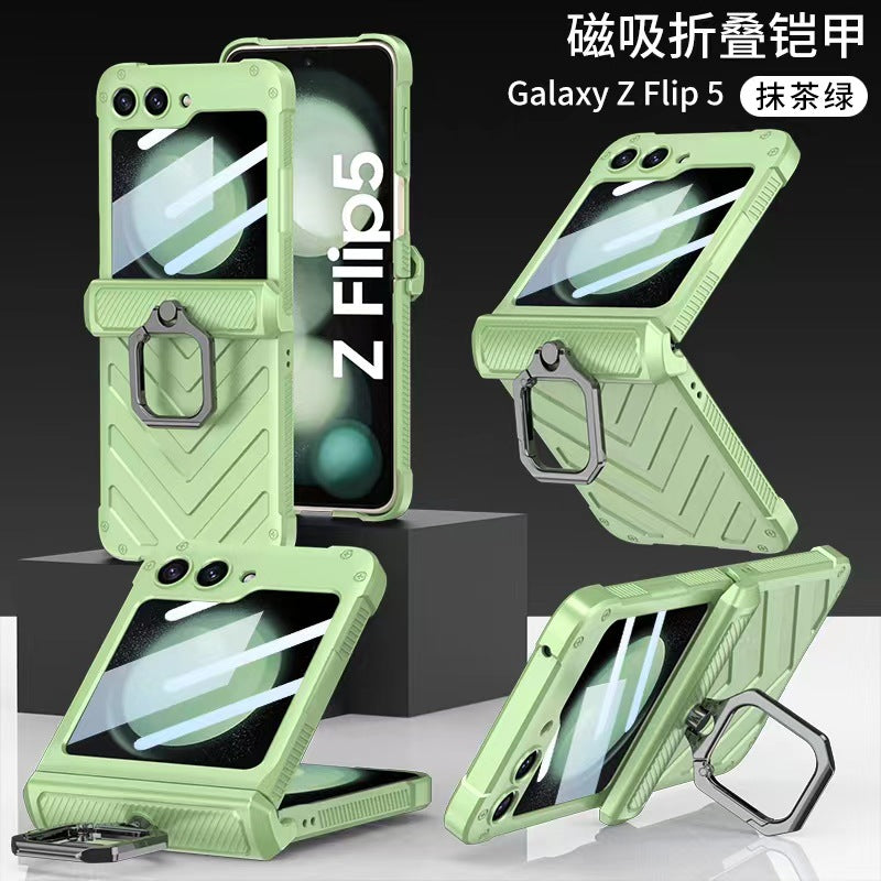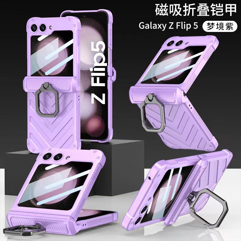 Magnetic Armor Shockproof Phone Case With Rotating Metal Ring Stand Holder For Samsung Galaxy Z Flip 5
