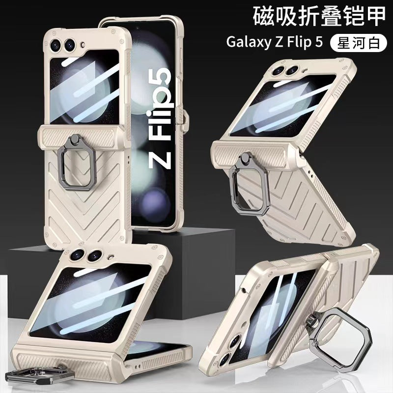 Magnetic Shockproof Hinge Case For Samsung Z Flip5 Heavy Duty Protective Cover For Galaxy Z Flip 4 Ring Holder Phone Cover