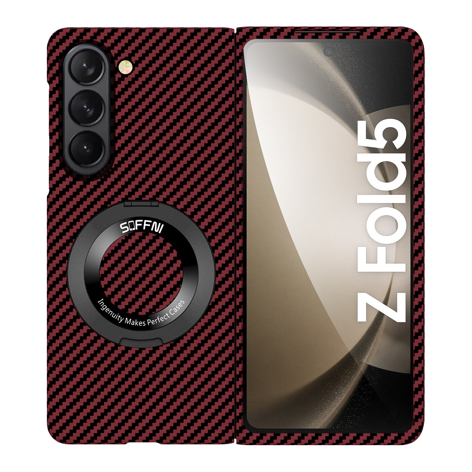 Magnetic Carbon Fiber Phone Case With Roating Ring Bracket For Samsung Galaxy Z Fold5