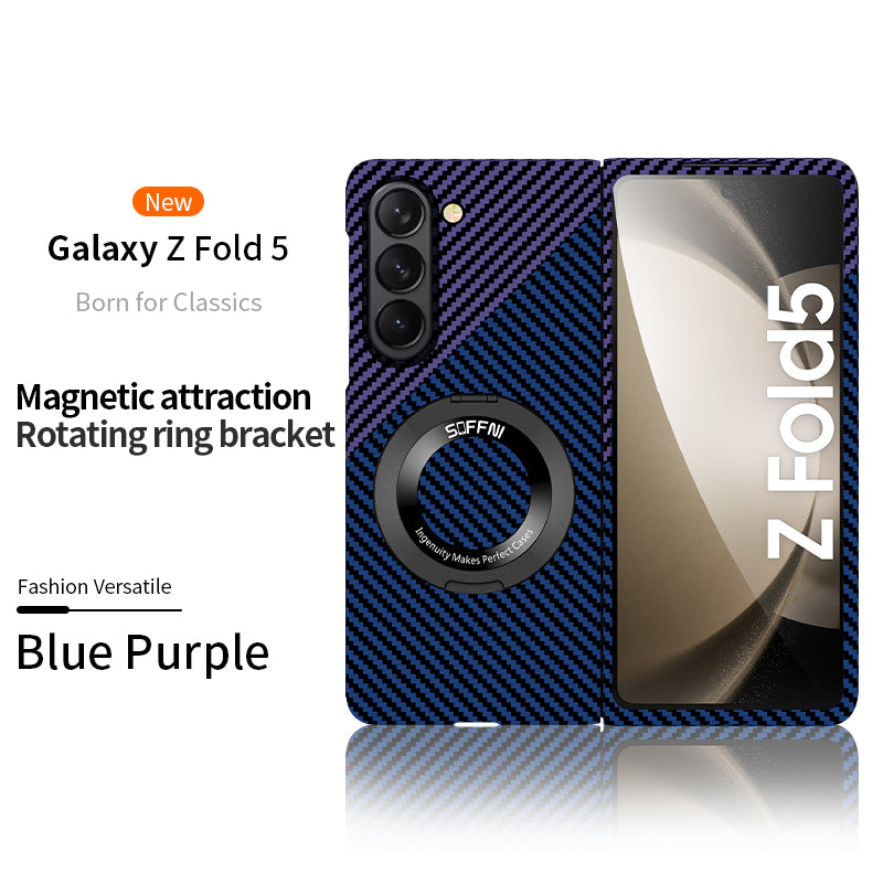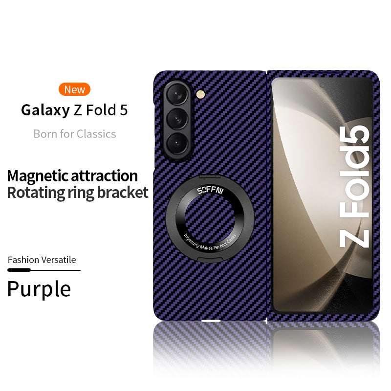 NEW Fashion Magnetic Carbon Fiber Phone Case With Roating Ring Bracket Case For Samsung Galaxy Z Fold5
