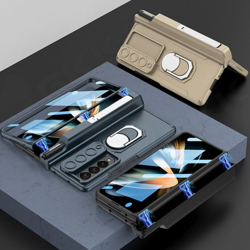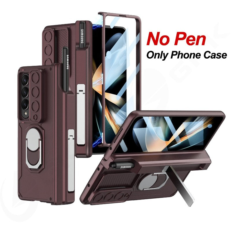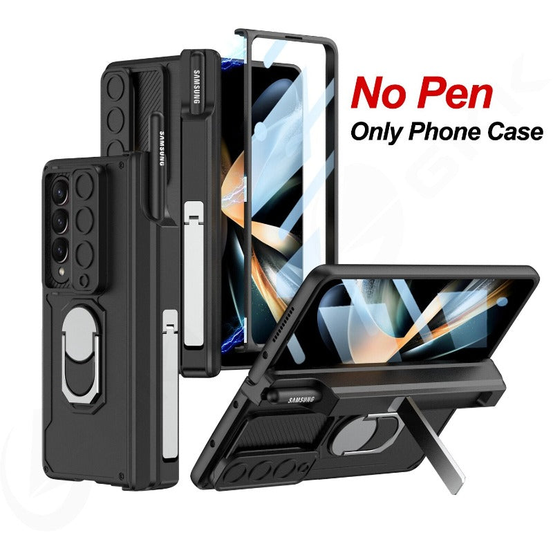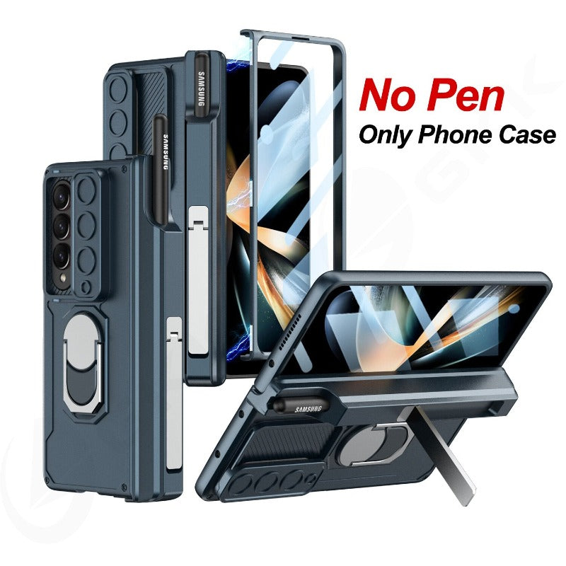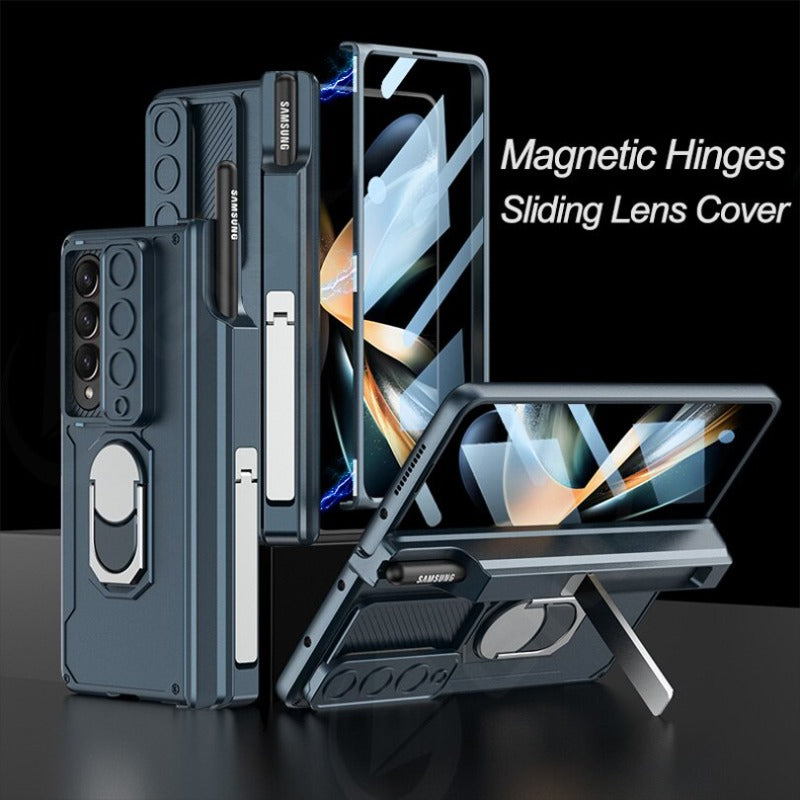 Magnetic Hinge Armor Slide Phone Case With Screen Flim Ring Stand For Samsung Galaxy Z Fold 4