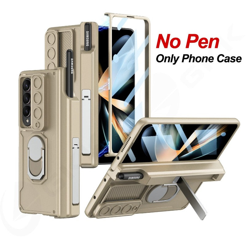 GKK Magnetic Hinge Armor Slide Lens Case For Samsung Galaxy Z Fold 4 Cover With Screen Flim Ring Stand For Galaxy Z Fold4 Case