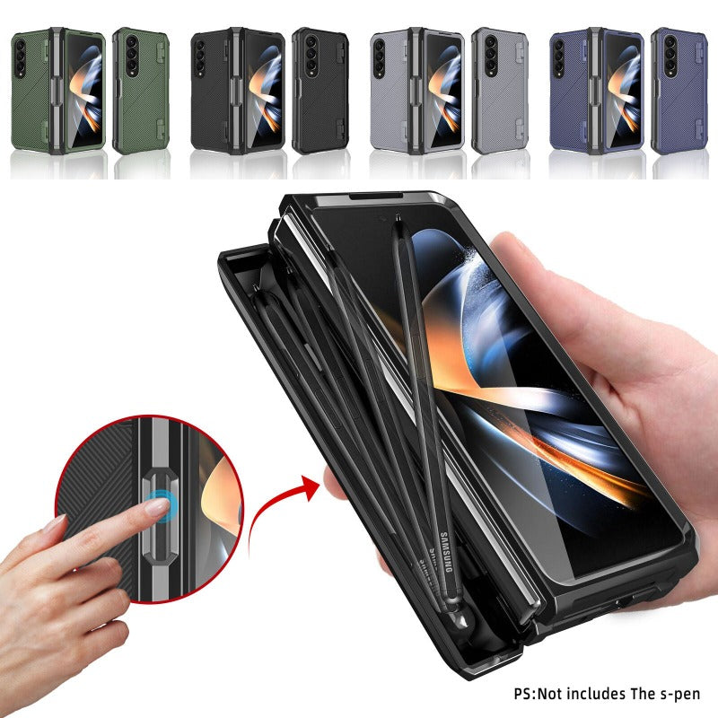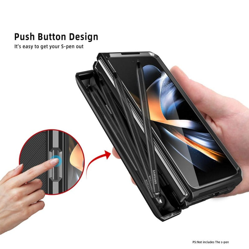 Magnetic Hinge Middle Push Side Phone Case With Pen Slot For Samsung Galaxy Z Fold 4