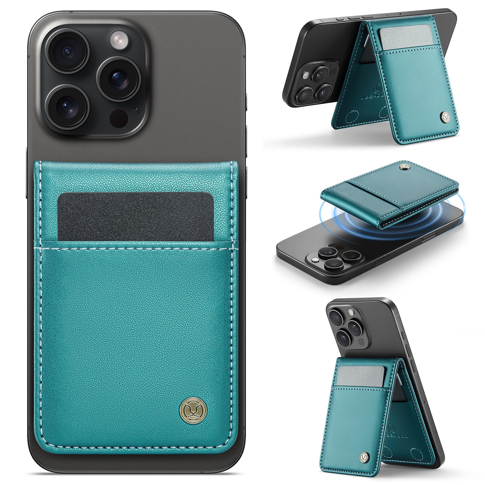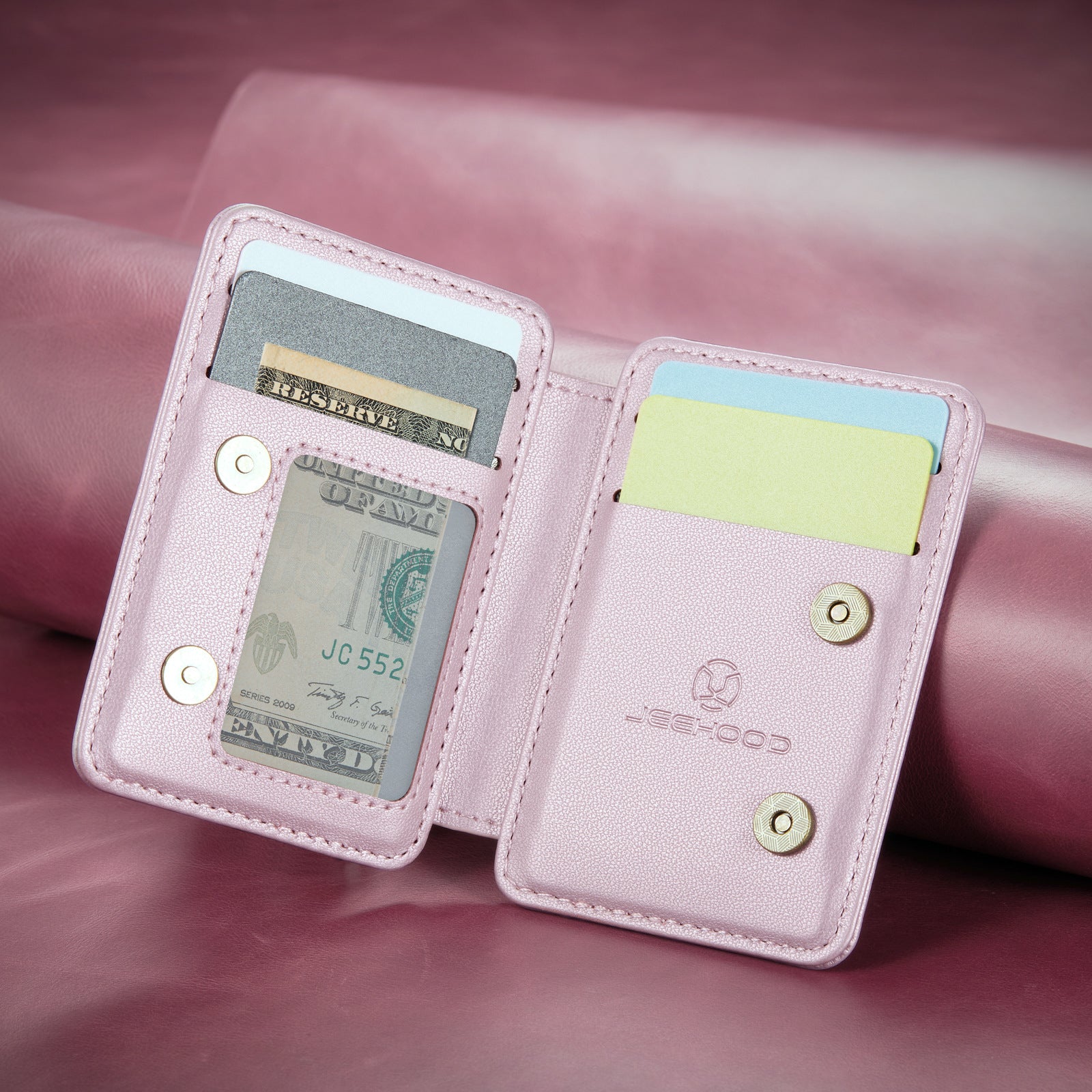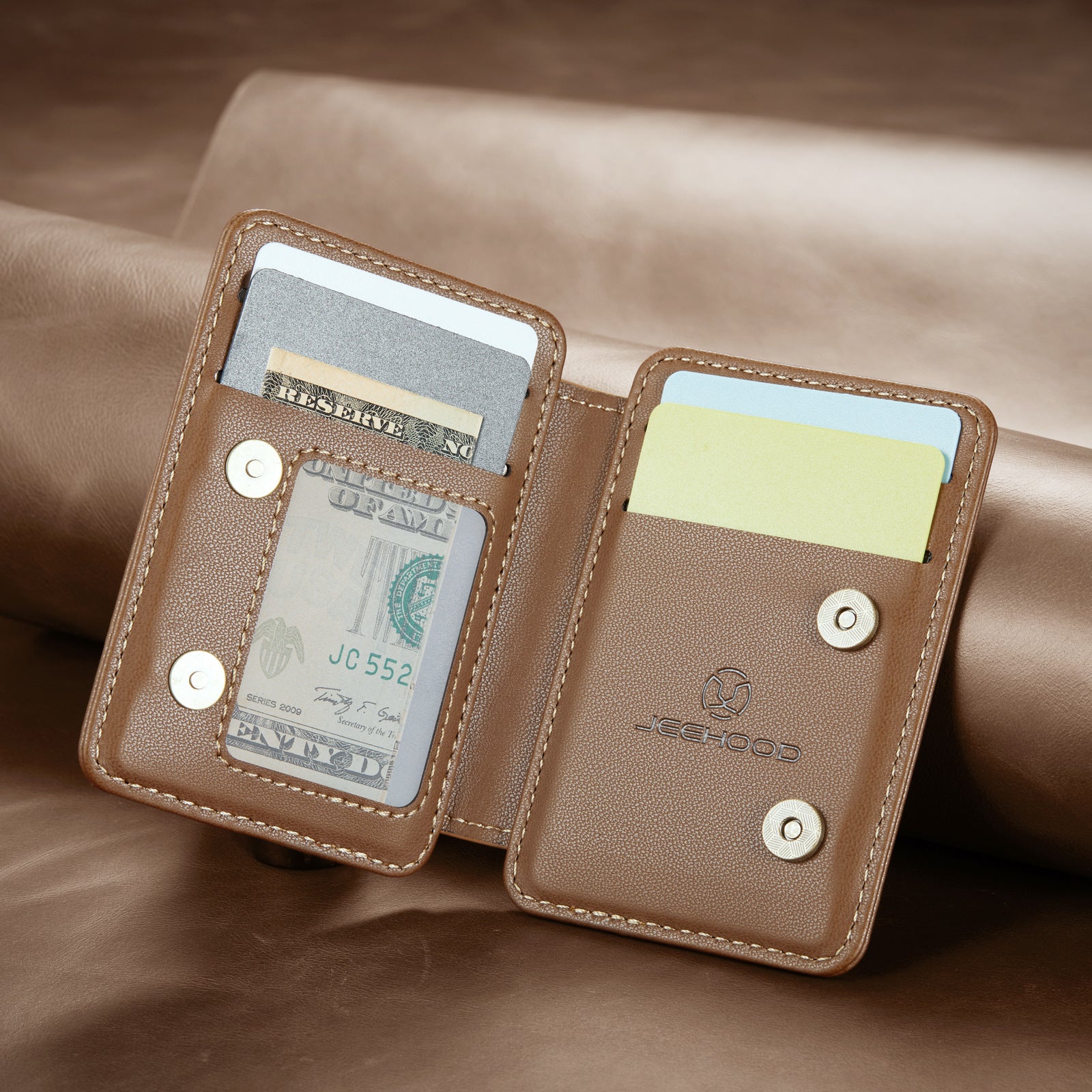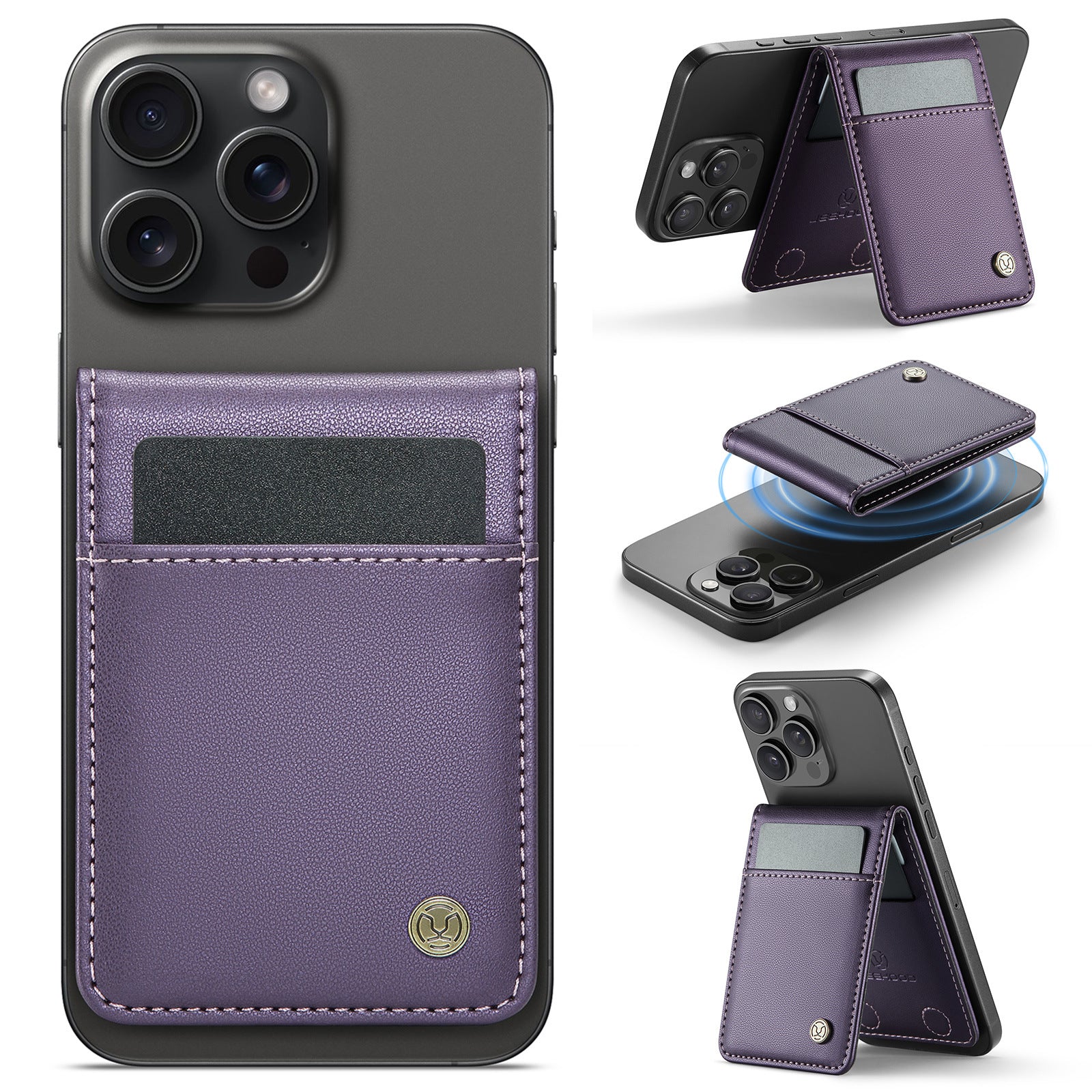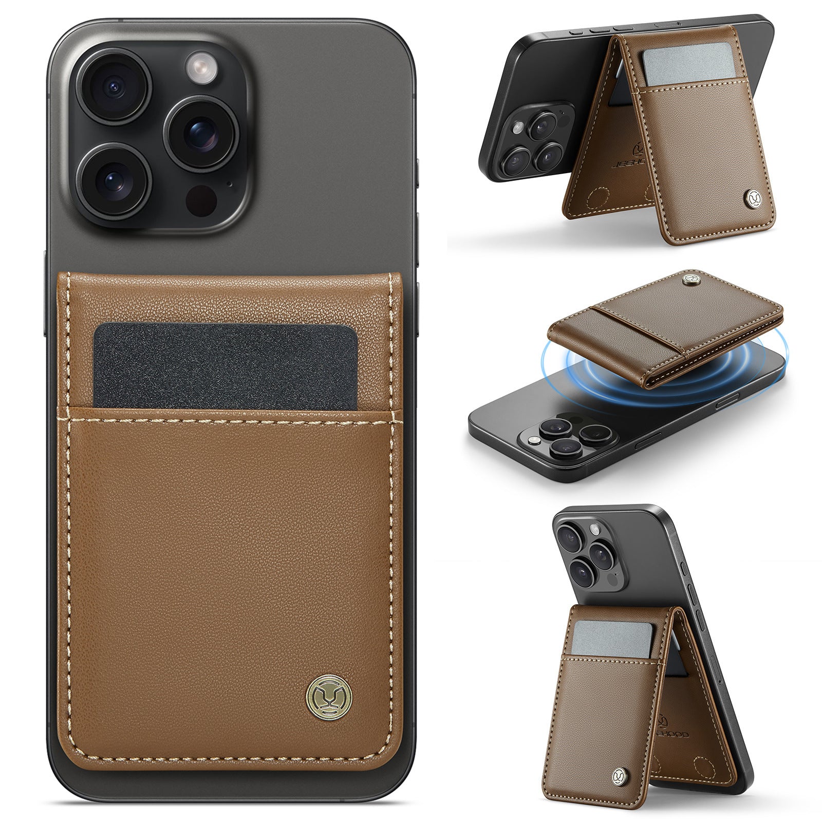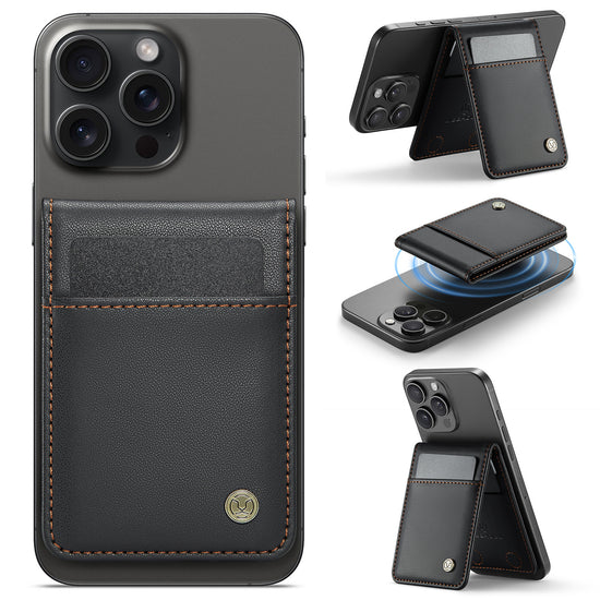 Magnetic Leather Card Wallet Universal for IPhone 16/15/13/12 Pro Max Back Attached Anti-theft Brush Card Bag Bracket Design