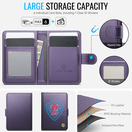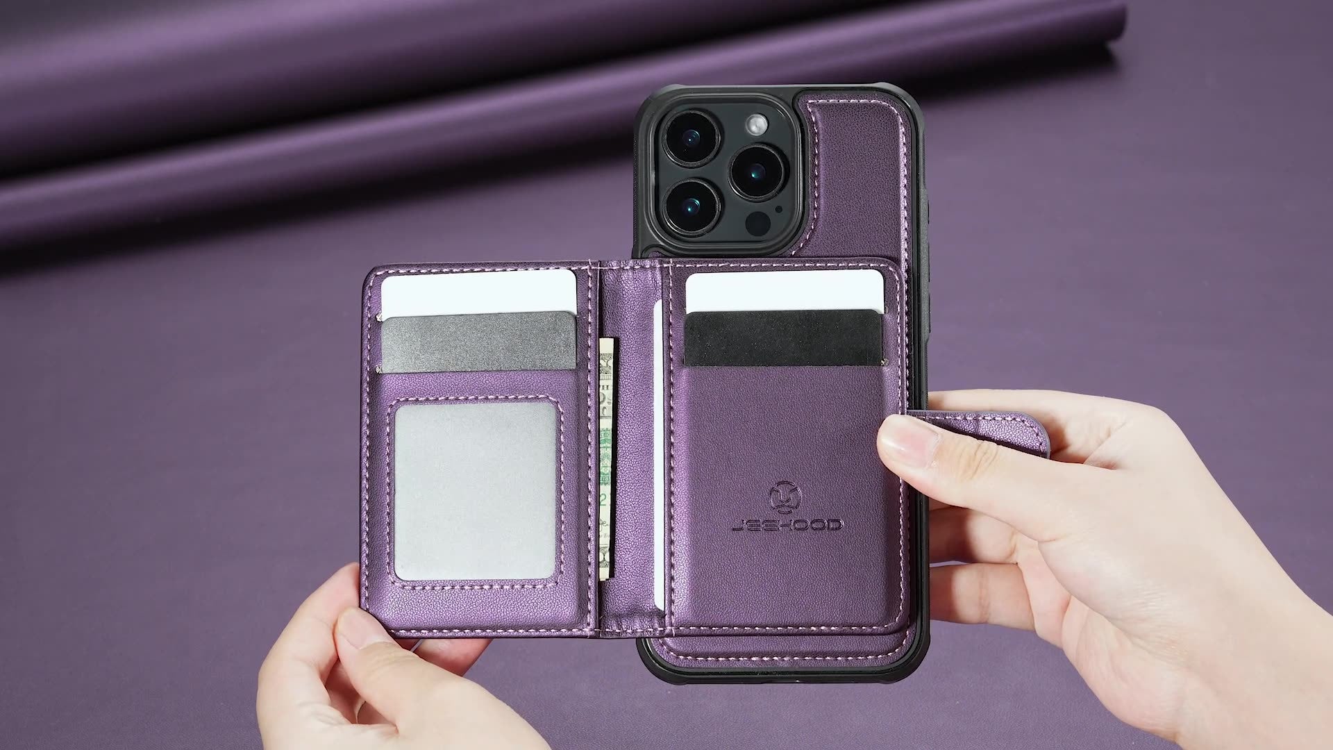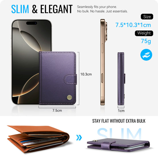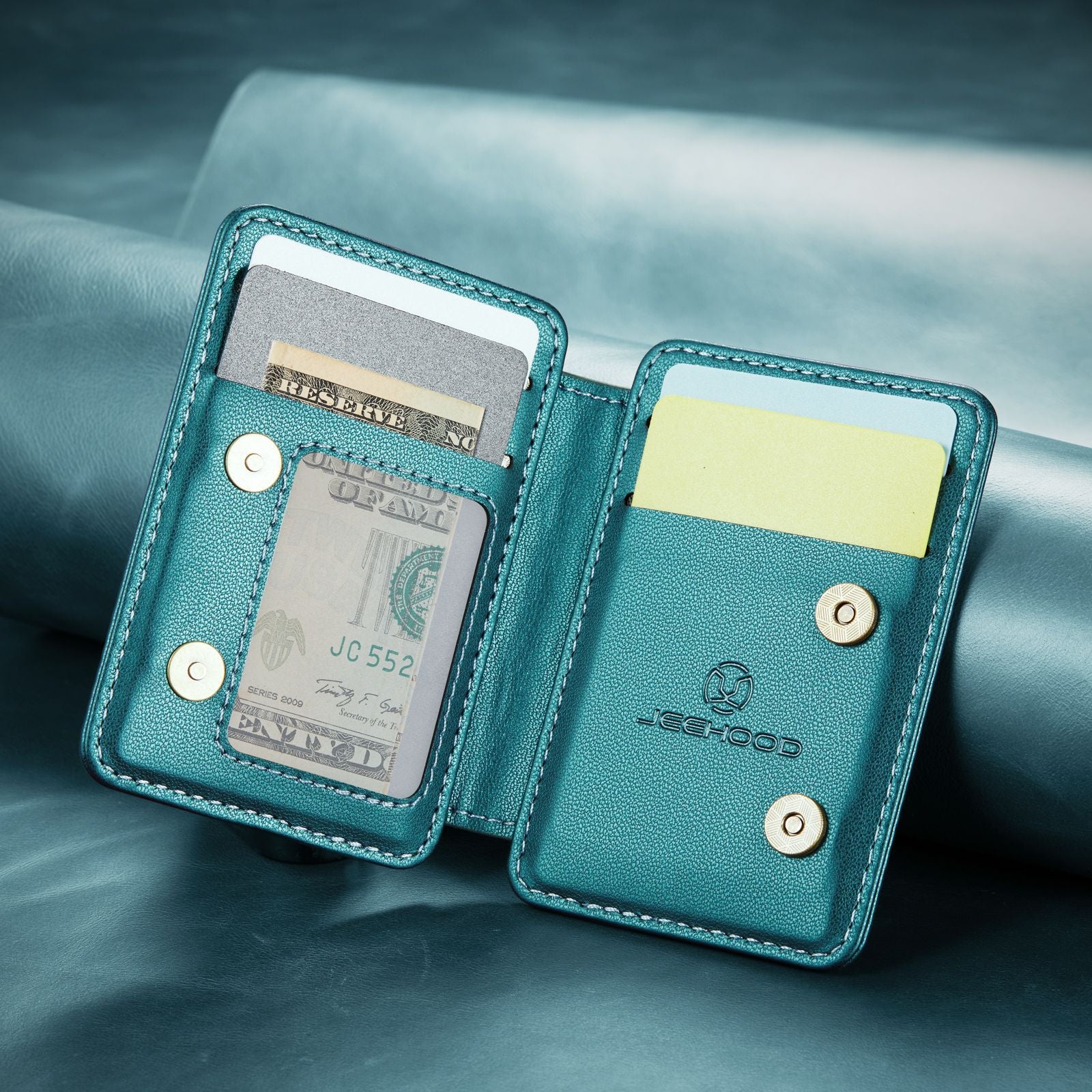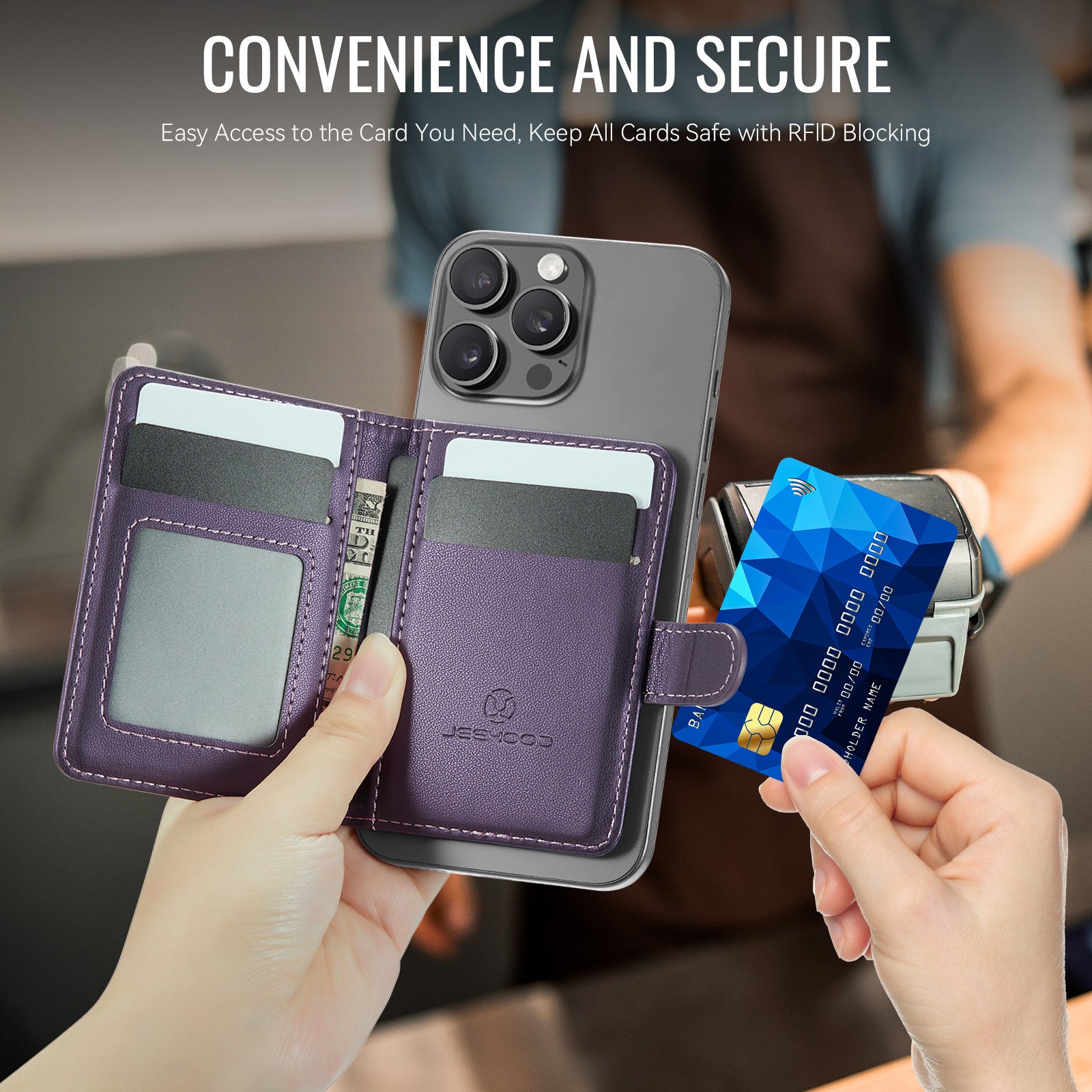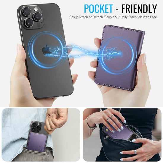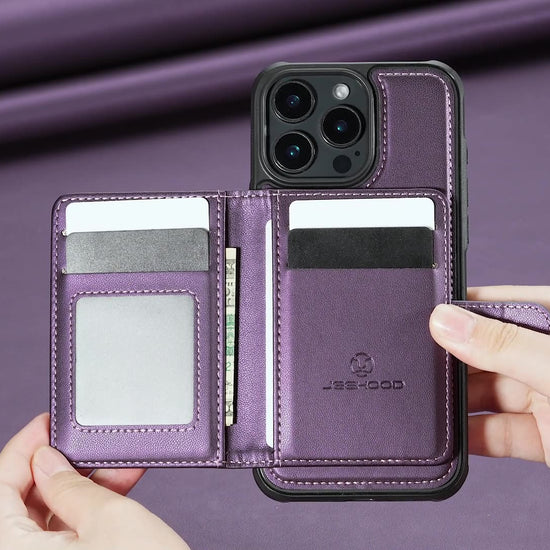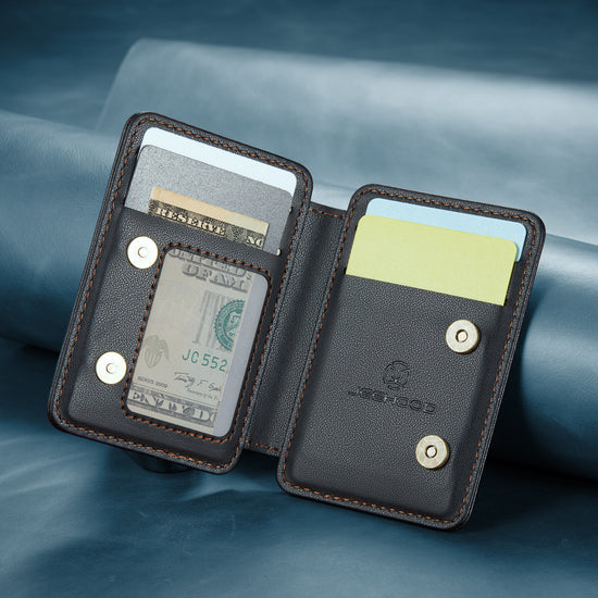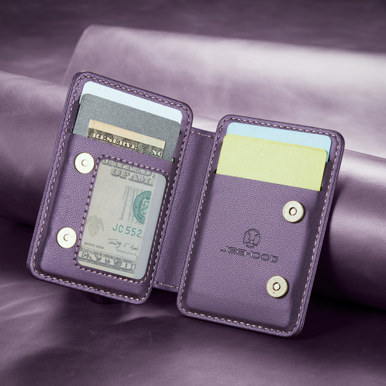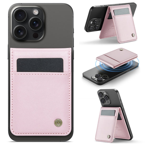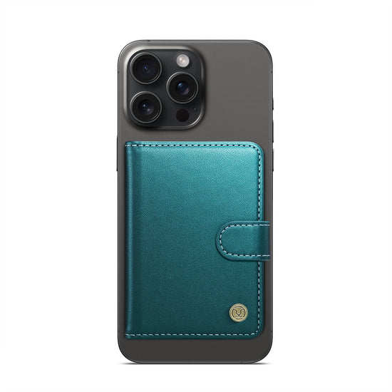 Magnetic Leather Card Wallet Universal for IPhone 16/15/13/12 Pro Max Back Attached Anti-theft Brush Card Bag Bracket Design