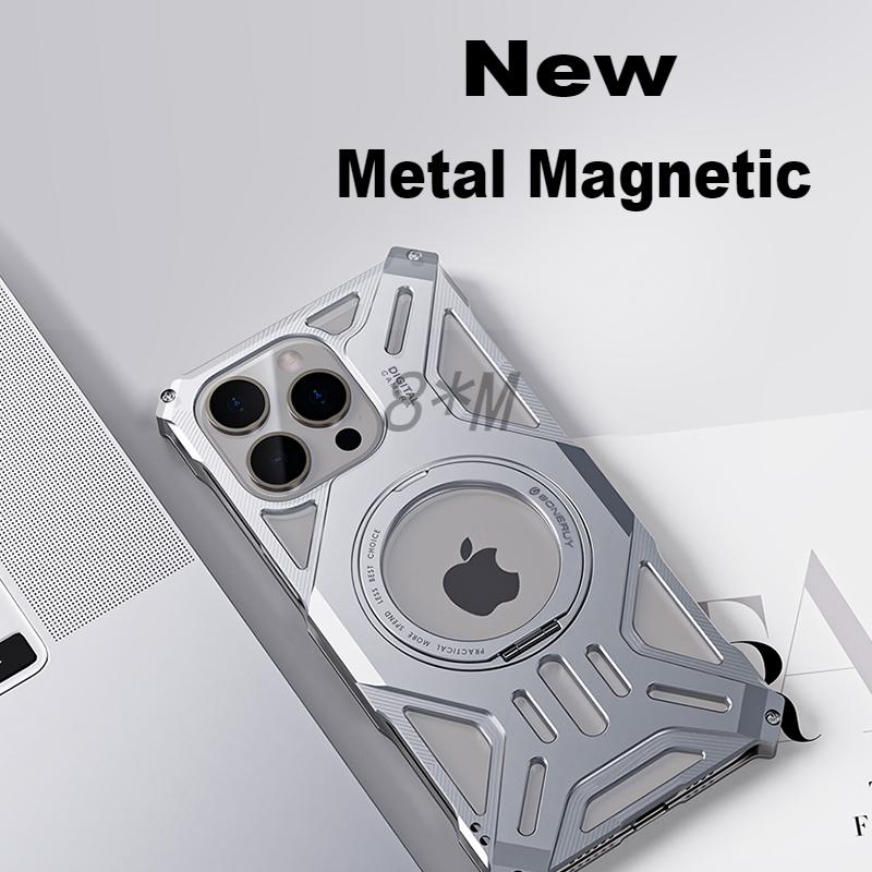 Magnetic Metal Aluminium Alloy Frameless Phone Case With 360° Stand For iPhone