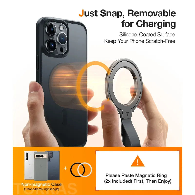 TORRAS Compatible for MagSafe Phone Grip Holder, Removable Magnetic Ring Kickstand, for iPhone 15 14, 13, 12 Pro/Max/Plus/Mini,Samsung, Google