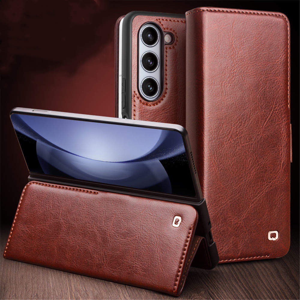Original QIALINO Genuine Leather Flip Case for Samsung Galaxy Z Fold 56 Magnetic Retro Business Holder Wallet Cover