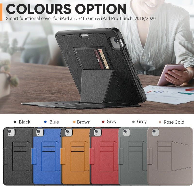 Magnetic Stand Case For iPad Air 5th 4th Generation 10.9 inch 2022 2020 - Shockproof Cover with Pencil Holder, Card Slot, Auto Sleep Wake For iPad Pro 11 inch 2018 2020 2021 2022 (1st/2nd/3rd/4th Gen)