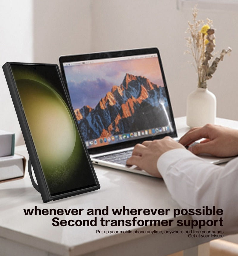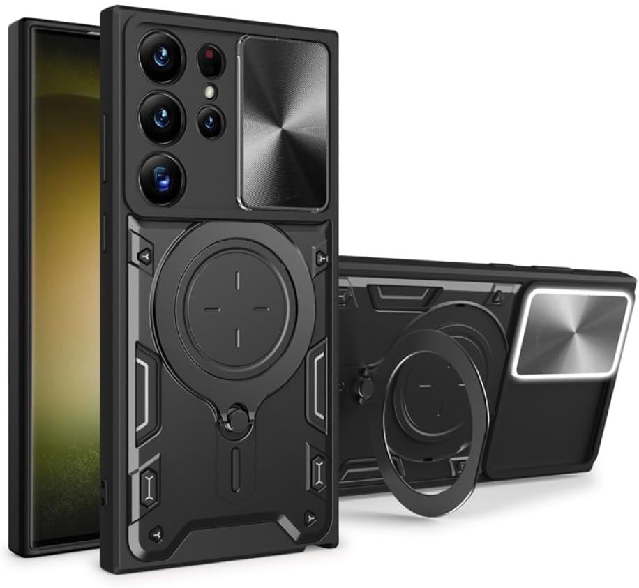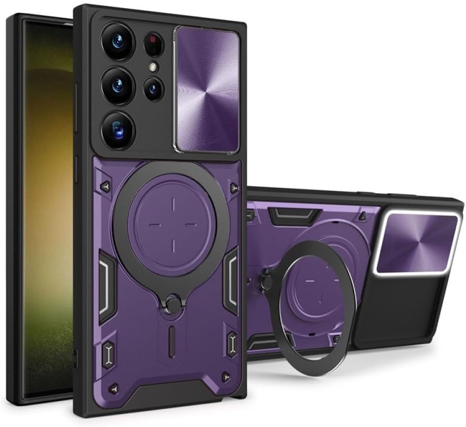 This Magsafe magnetic phone case is an ideal companion for your Samsung S23 S22, featuring a dual layer construction and anti-scratch/anti-fingerprint coating for superior protection. A built-in slide camera and external photo lens provide improved photo taking ability, while the built-in kickstand offers easy viewing. Plus, the lightweight construction ensures optimal portability.