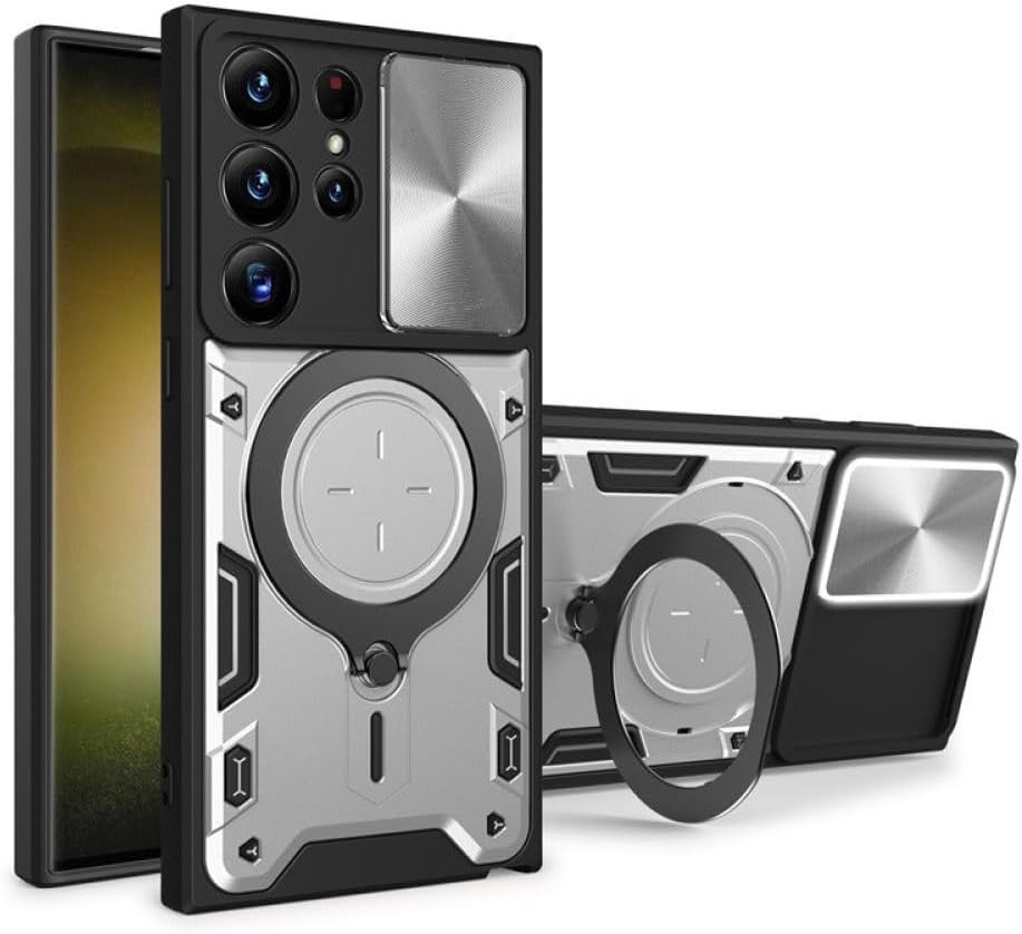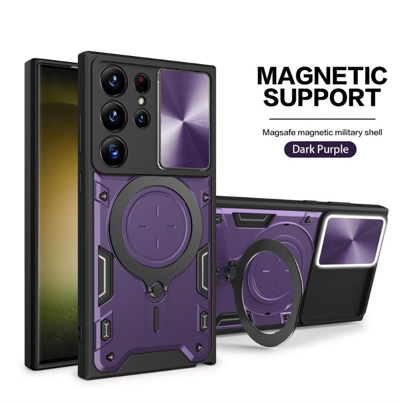 Magsafe Metal Phone Case Slide Camera With Kickstand For Samsung S24 S23