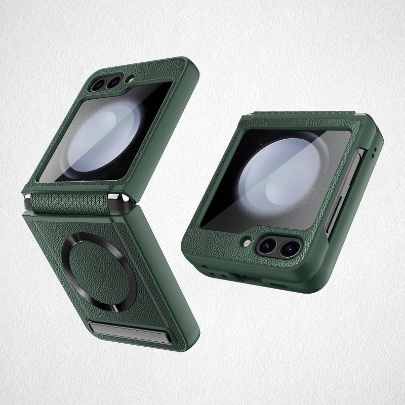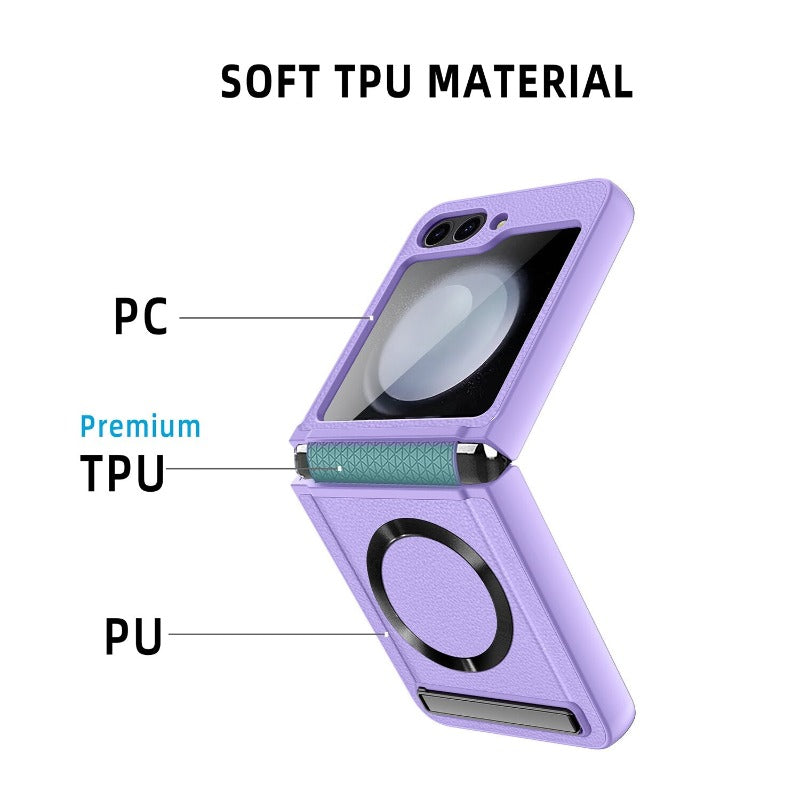 Magsafe PU Leather Kickstand Phone Case With Glass Film For Samsung Galaxy Z Flip 5