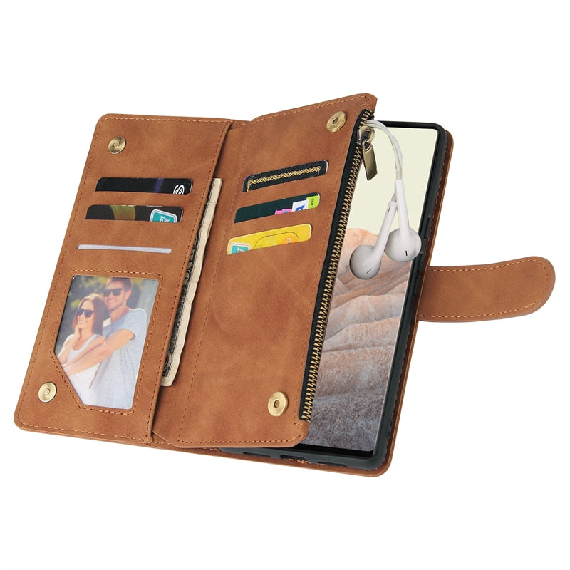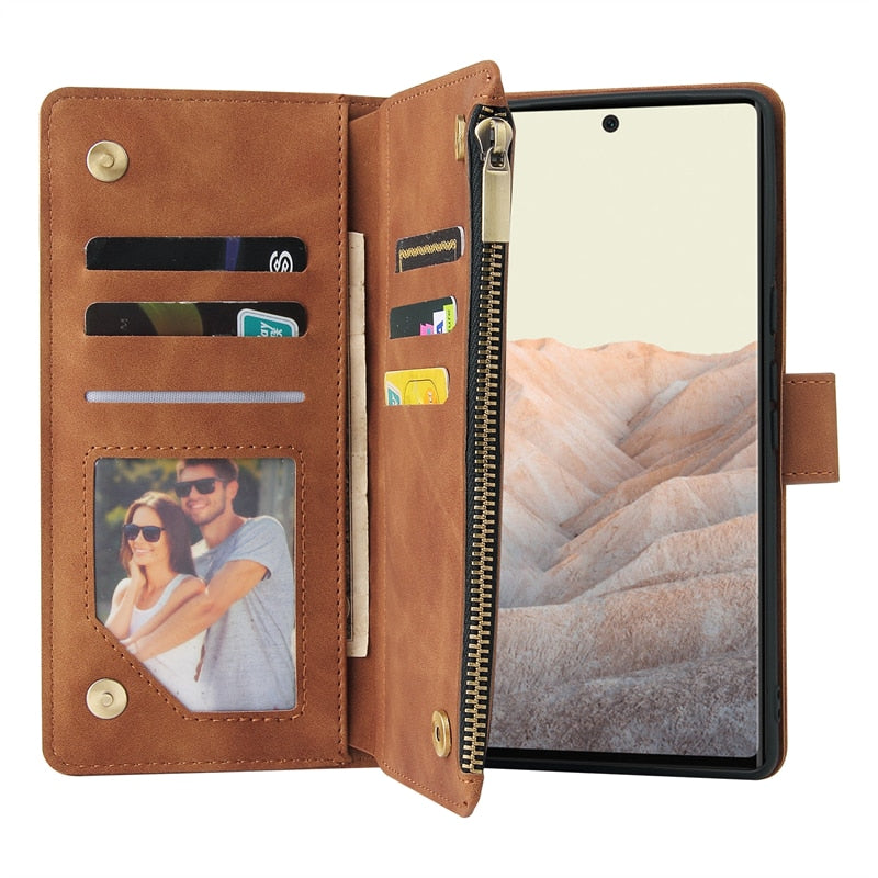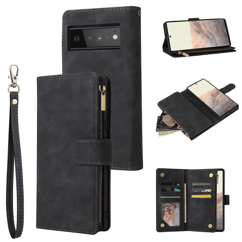 Matte Flip Leather Wallet Phone Case With Zipper For Google Pixel
