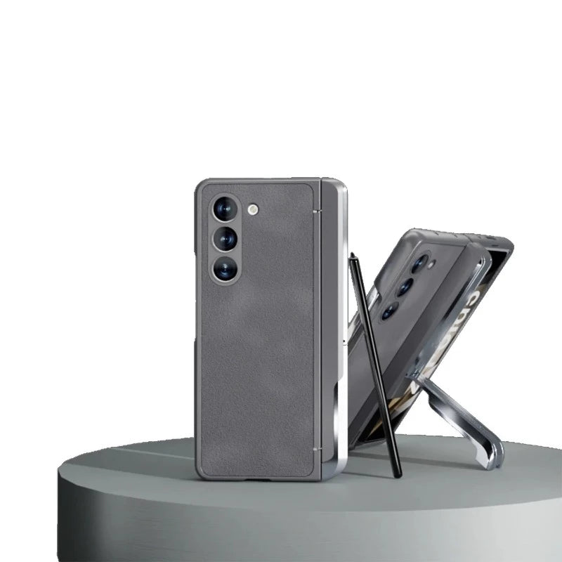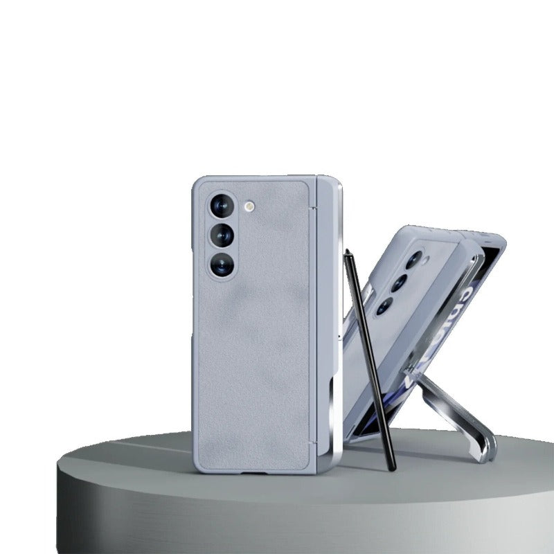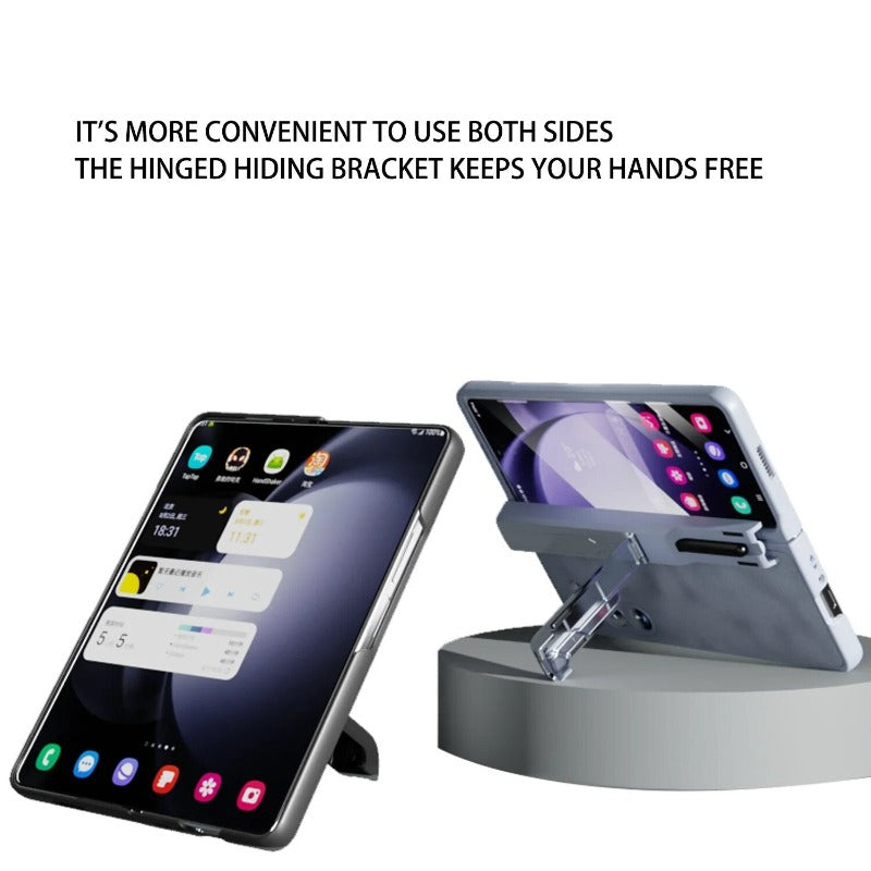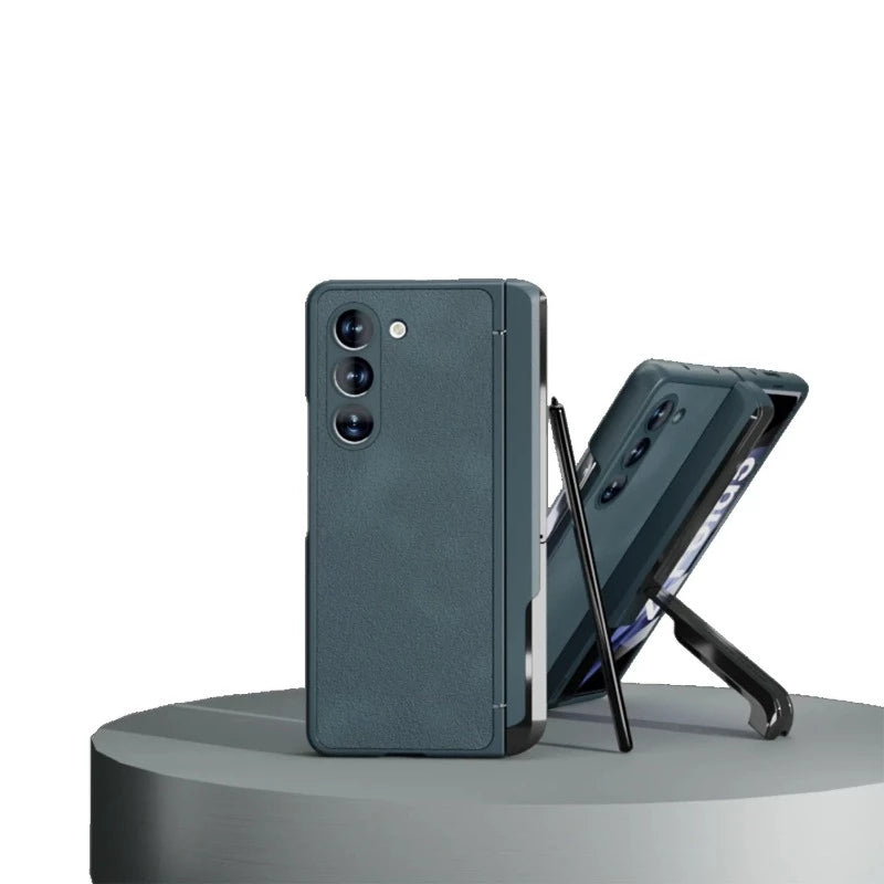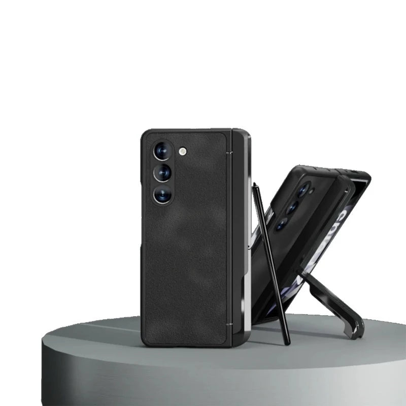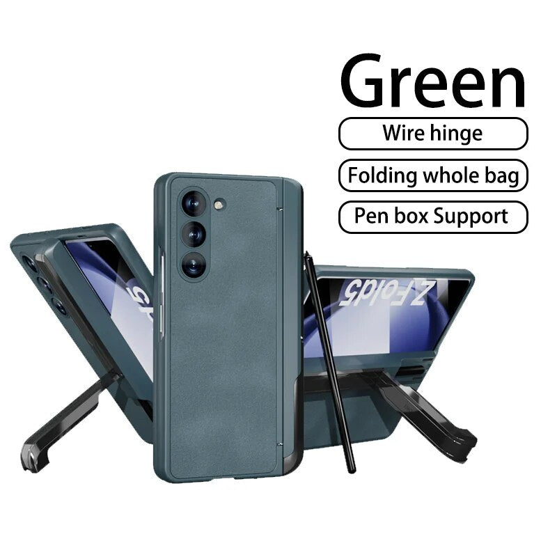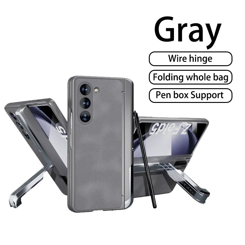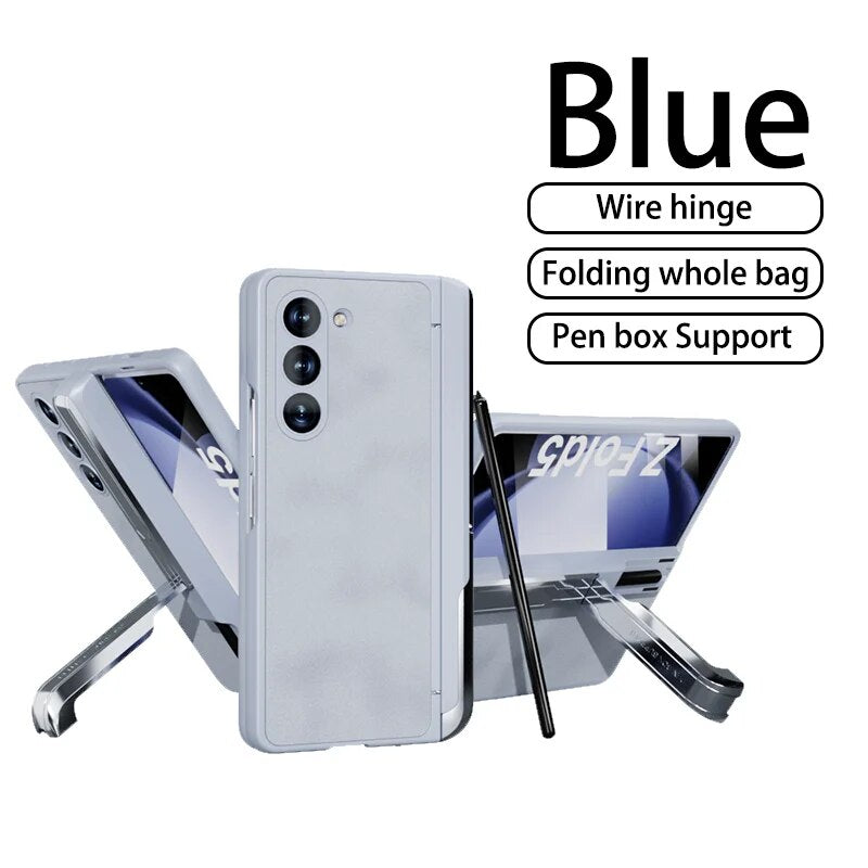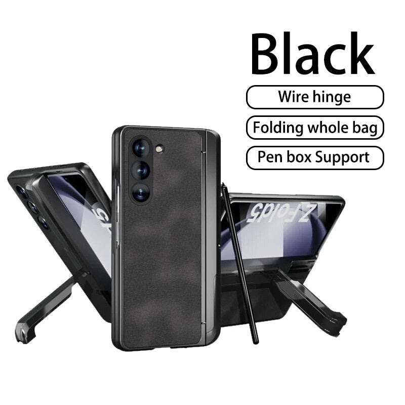 For Samsung Galaxy Z Fold 5 Case Matte plain skin Pencil Case Bracket Magnetic Hinge With Tempered Film Folding Shockproof Cover