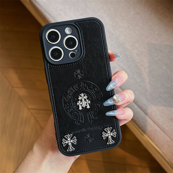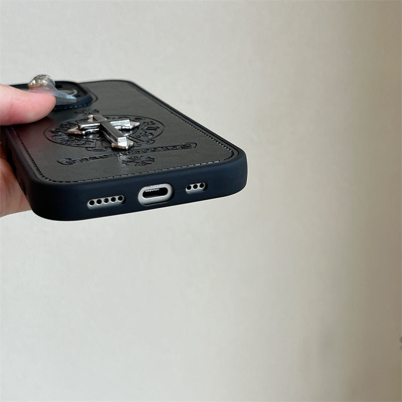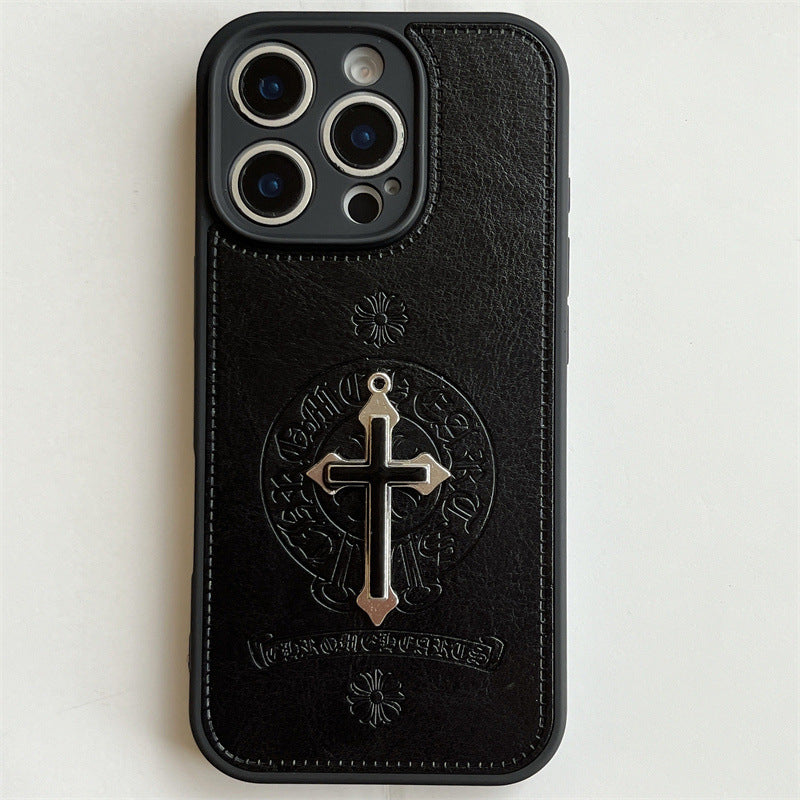Metal Black Cross Leather Phone Case For iPhone