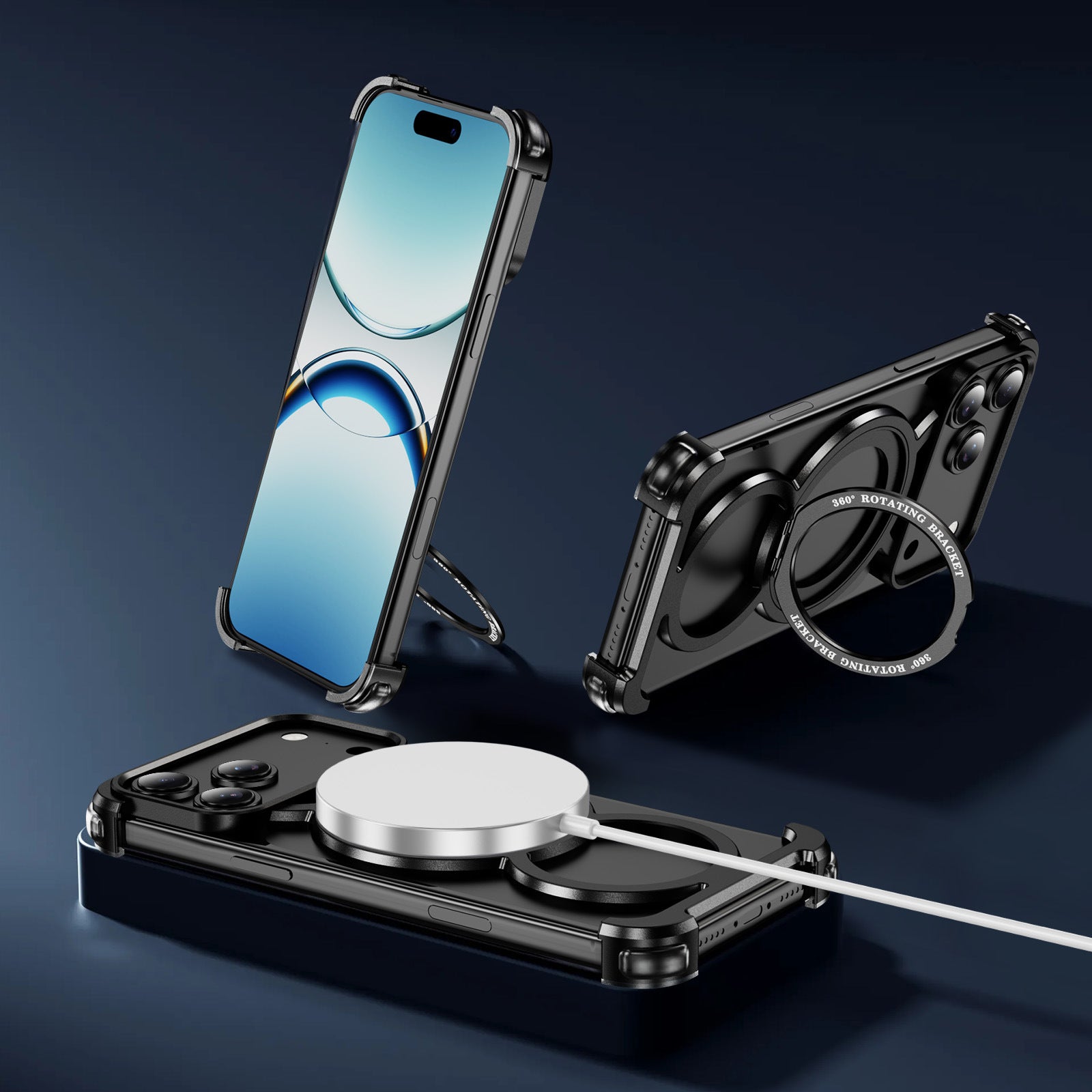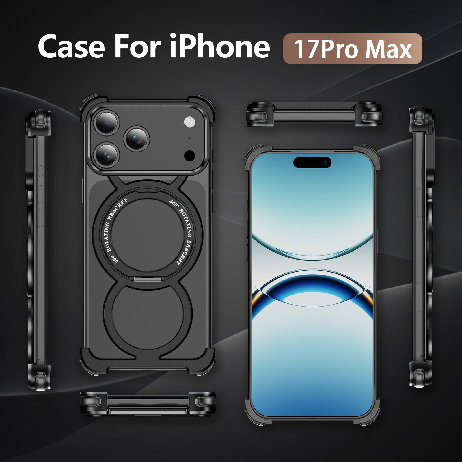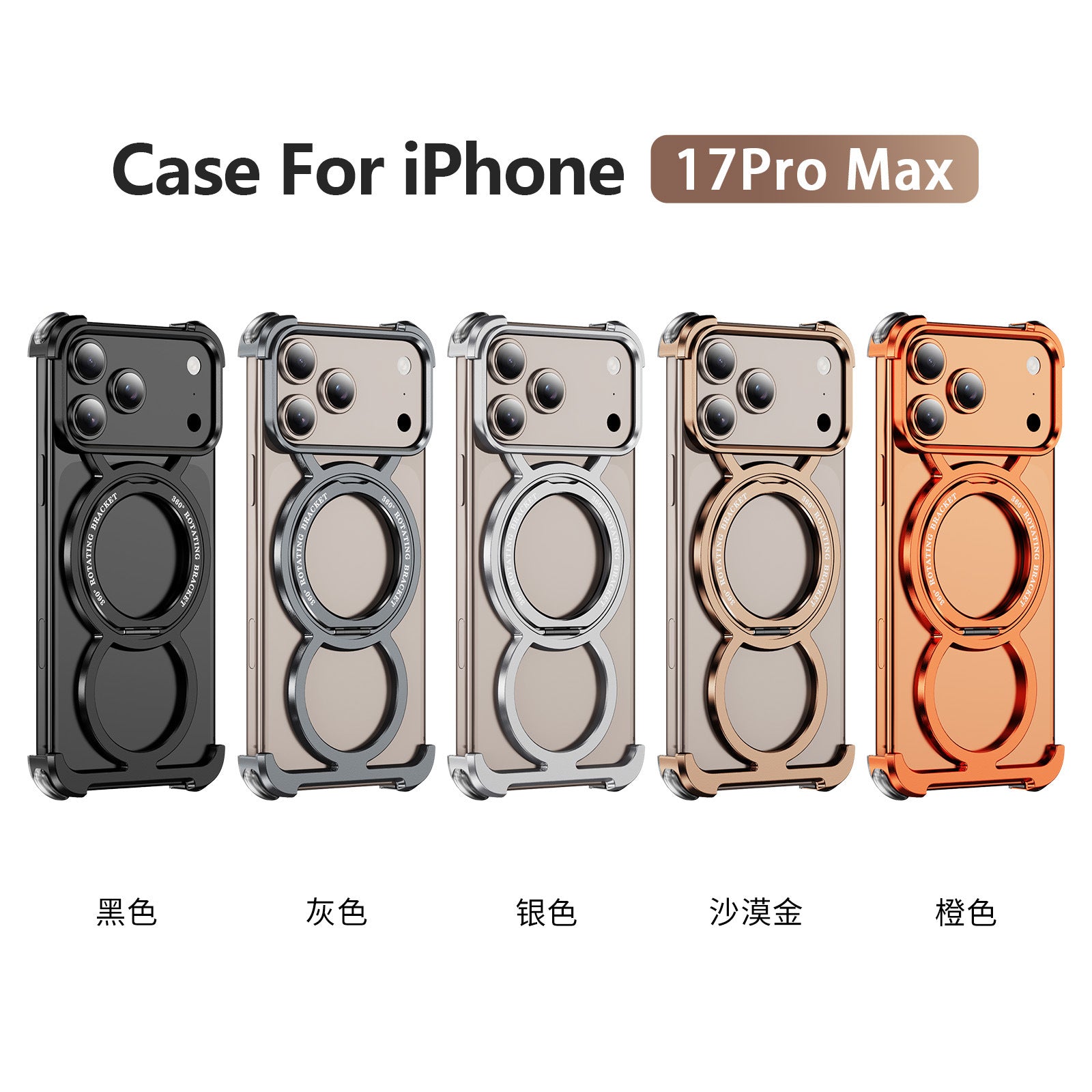 Metal Frame Magsafe 360° Rotate Holder Aluminum Phone Case For iPhone 17 16 ProMax Phone Wireless Charging Shockproof Cover