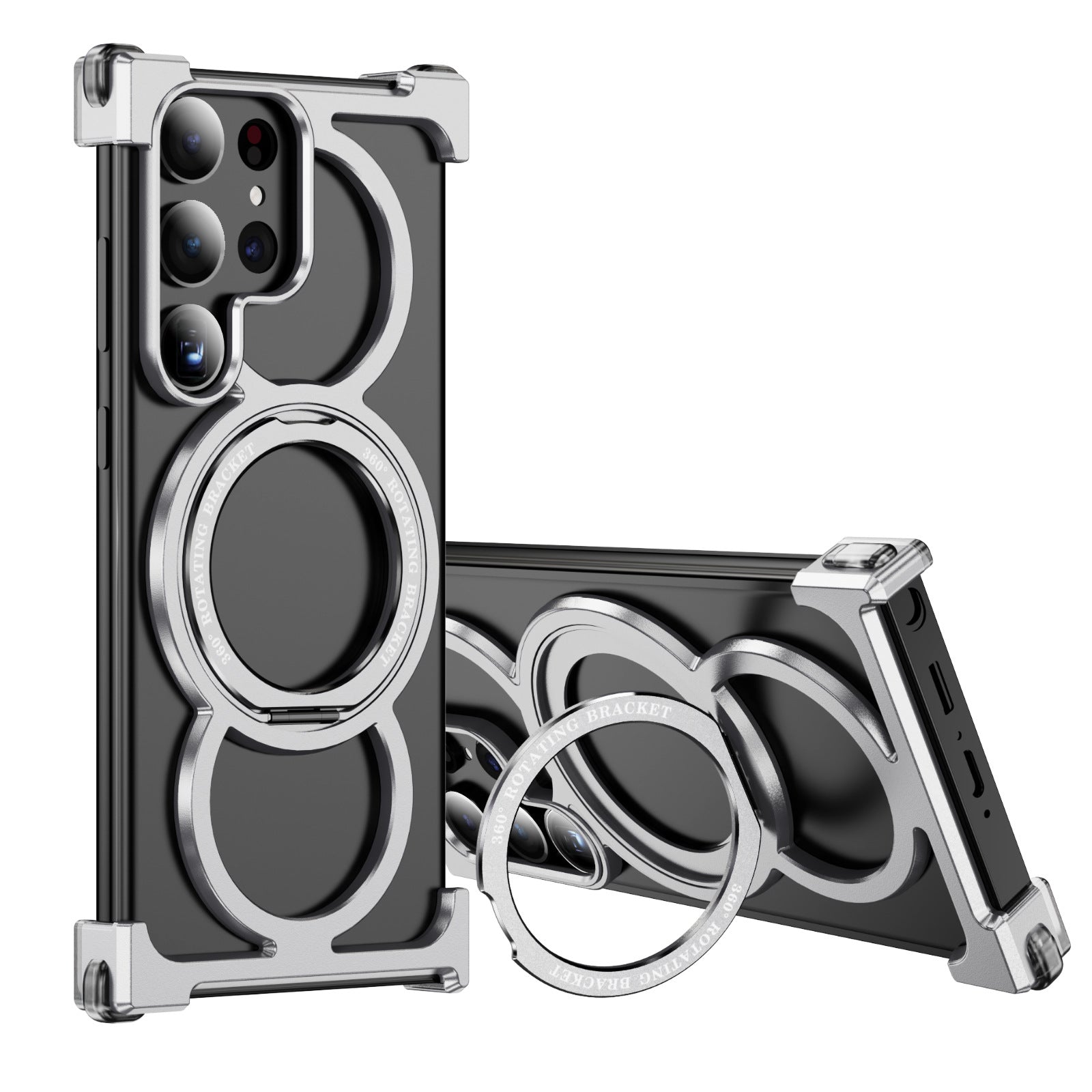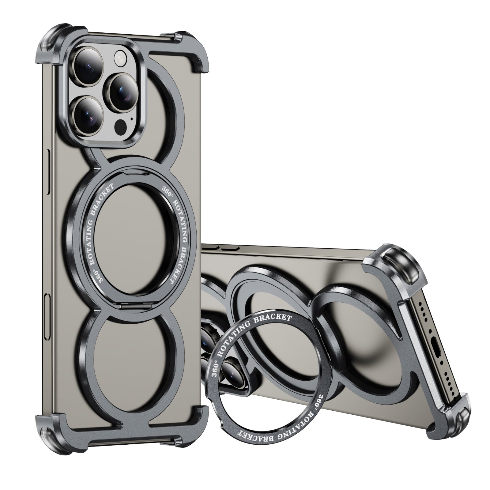 Metal Frame Aluminum Phone Case WIth 360° Rotate Holder For iPhone