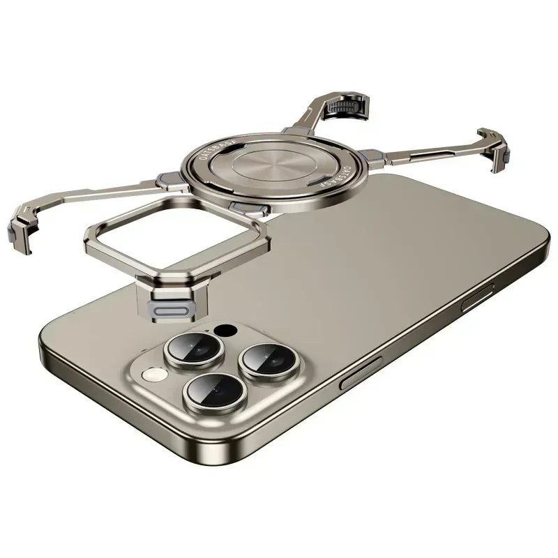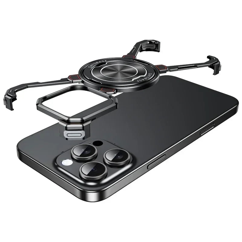 Metal Frameless Magnetic Magsafe Phone Case With 360° Rotating Bracket For iPhone