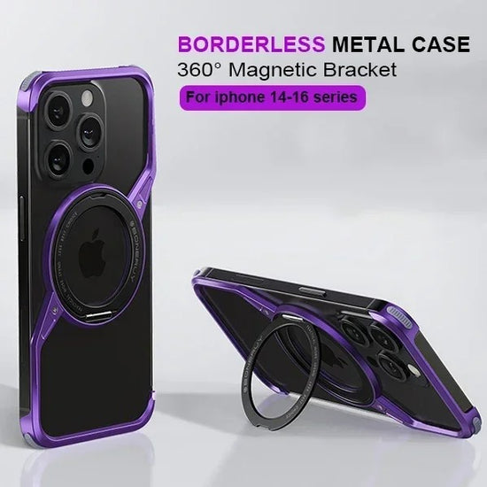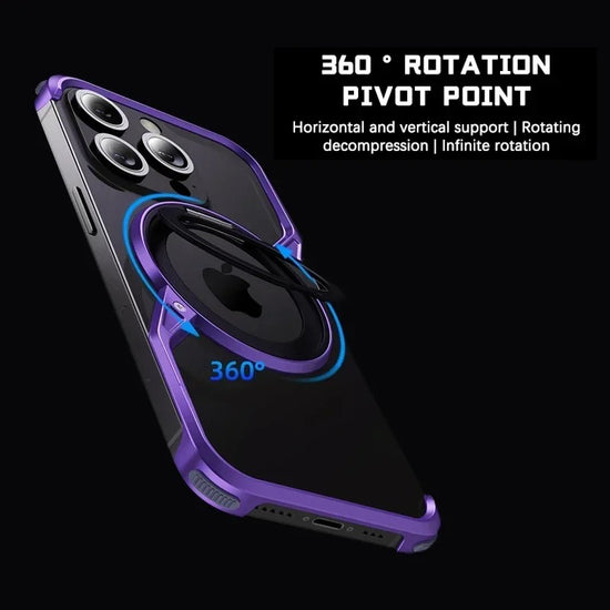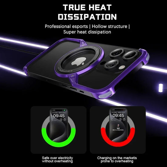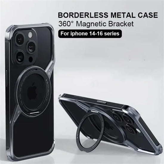 Metal Phone Case Magsafe 360° Rotating Stand Aluminum Alloy Frameless Cooling Case For iPhone
