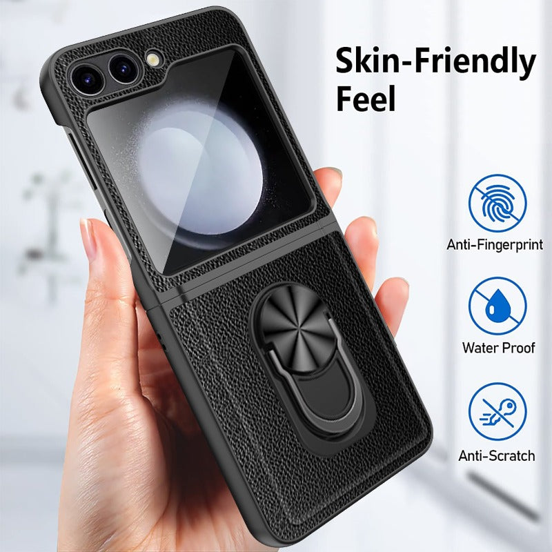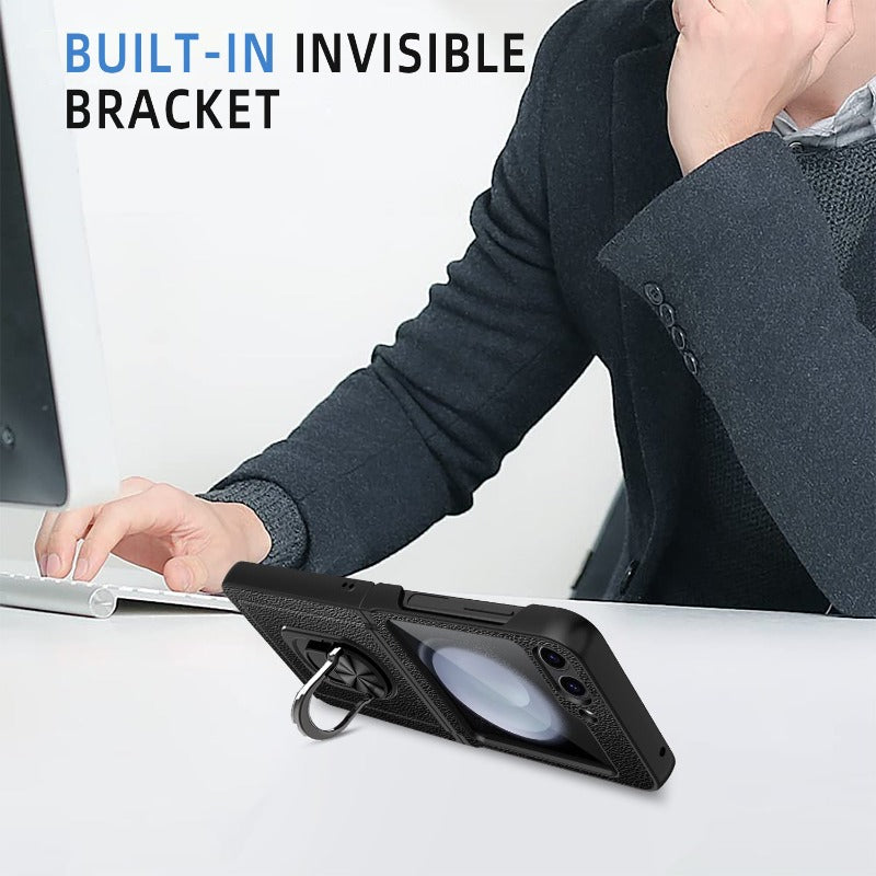 Military Graded Ultra-thin Fold Screen Mobile Phone Case With Invisible Stand With Glass Tempered Film For Samsung Galaxy Z Flip 5