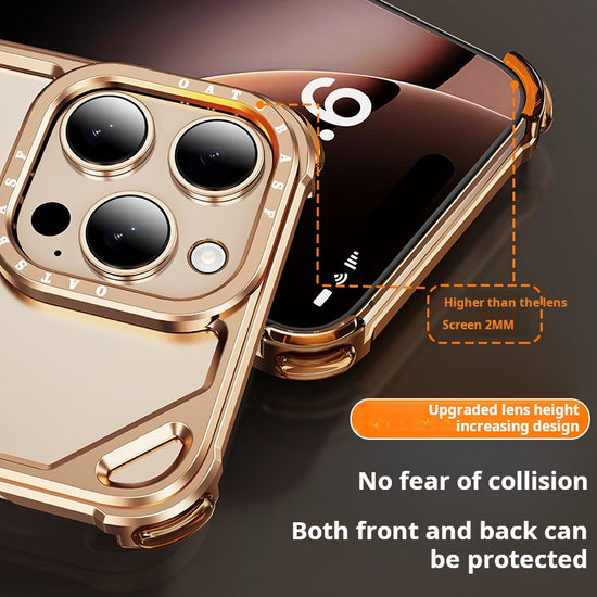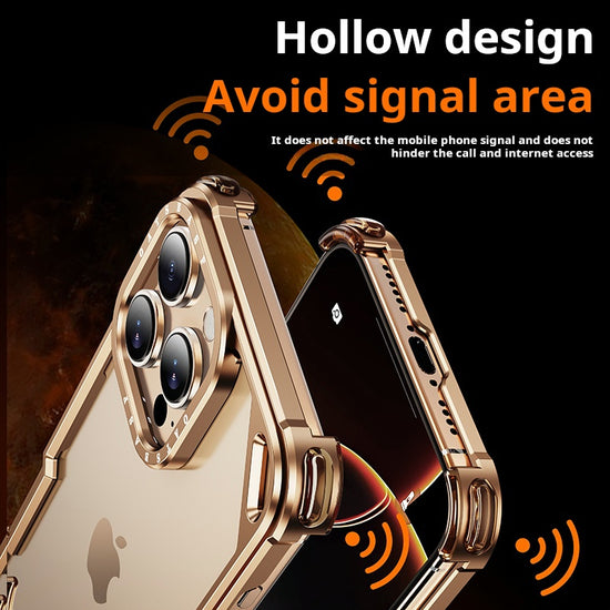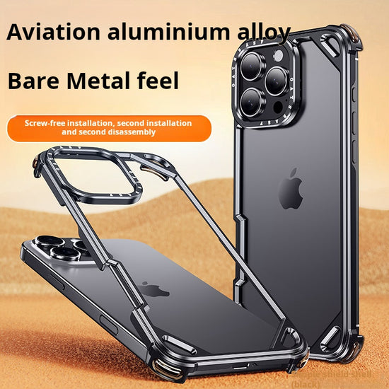This ultra-thin phone case for iPhone 17 and 16 ProMax features a frameless, hollow-out design crafted from aviation-grade aluminum alloy. It delivers minimalist protection with shockproof bumpers that absorb impact without adding bulk. The lightweight construction ensures a sleek profile while providing durable defense against drops and scratches, making it an expert choice for users seeking style and reliable protection.