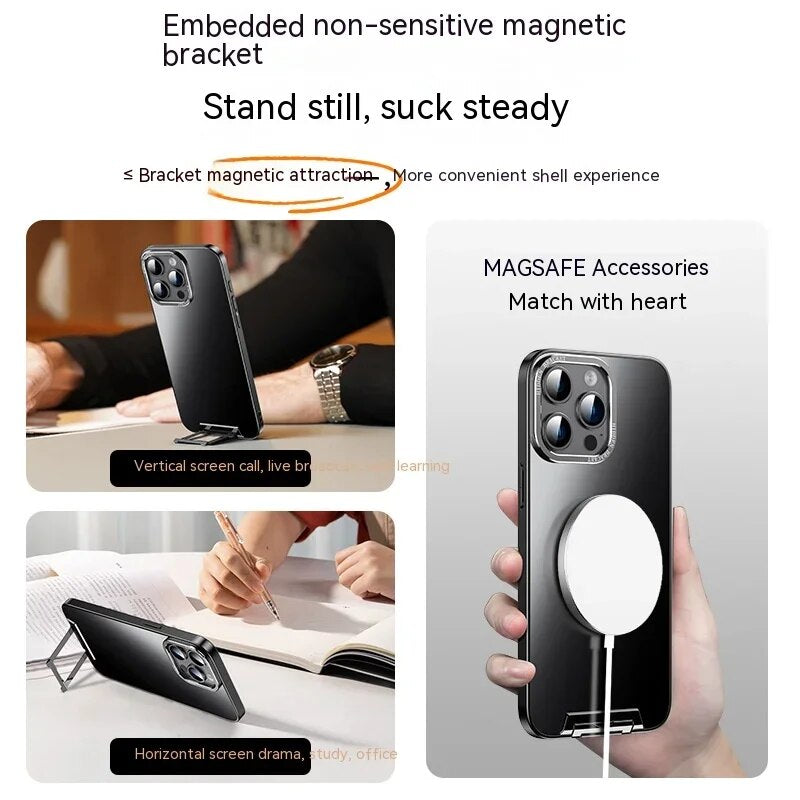 New Metal With Invisible Stand Magnetic Case For iPhone