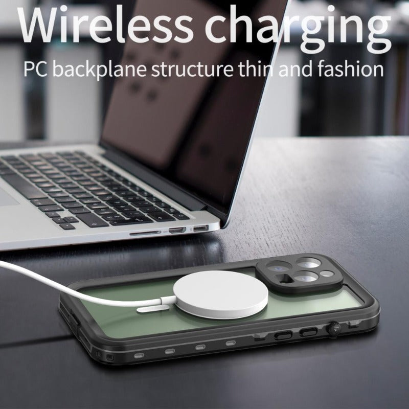 This rugged case combines TPU, PC, and PET material for a 360° waterproof, anti-fingerprint, anti-scratch, dustproof, dual-layer, heavy-duty, and lightweight design. It provides full coverage and wireless charging, and is ideal for outdoor swimming, as it is water-resistant and IP68 waterproof. Plus, its shockproof armor and full-sealed construction offer secure protection. ForiPhone 14, iPhone 14 Plus, iPhone 14 Pro and Pro Max.
