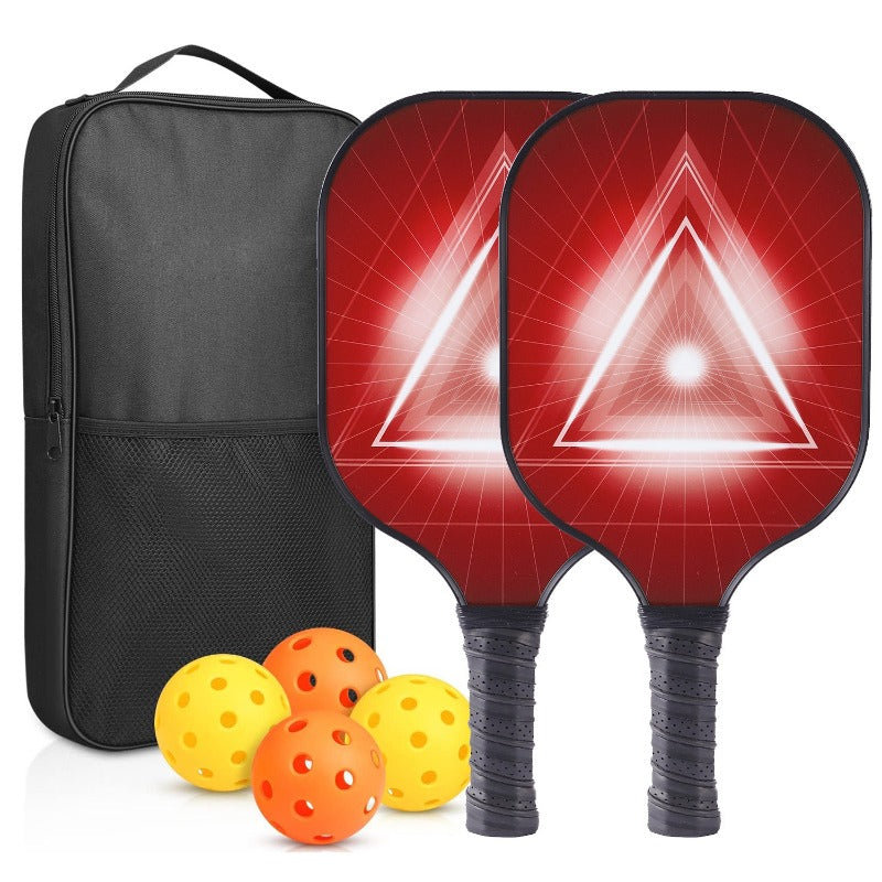 This pickleball set includes two USAPA approved fiberglass rackets and four balls, plus a portable carry bag to keep everything together. Durable and lightweight, the rackets are designed for improved grip and increased control during your game. Get ready for some competitive pickleball fun!