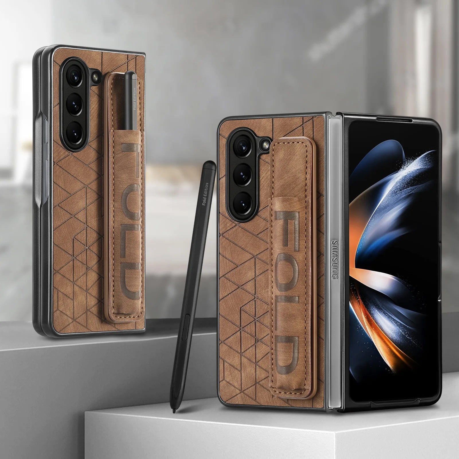 PU Leather Wrist Strap Shock Proof Phone Back Cover Case For Samsung Z Fold 6 5