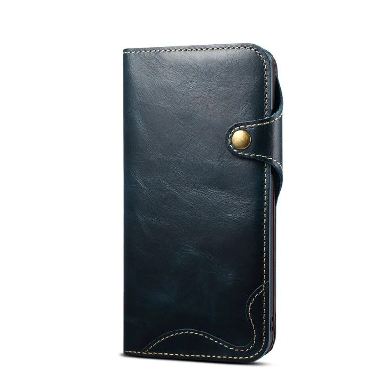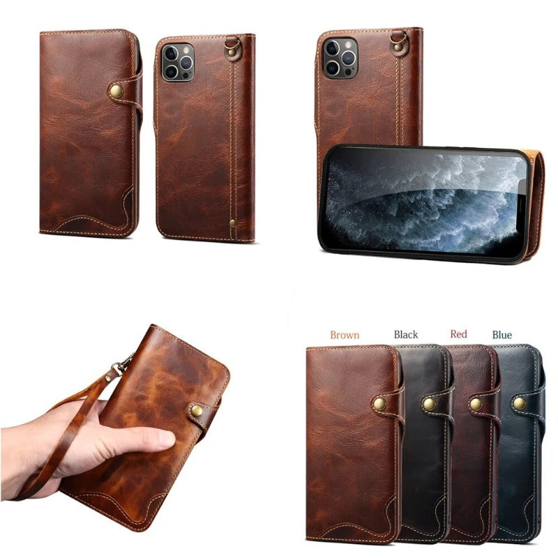 Real Cowhide Leather Texture Flip Wallet Phone Case For iPhone