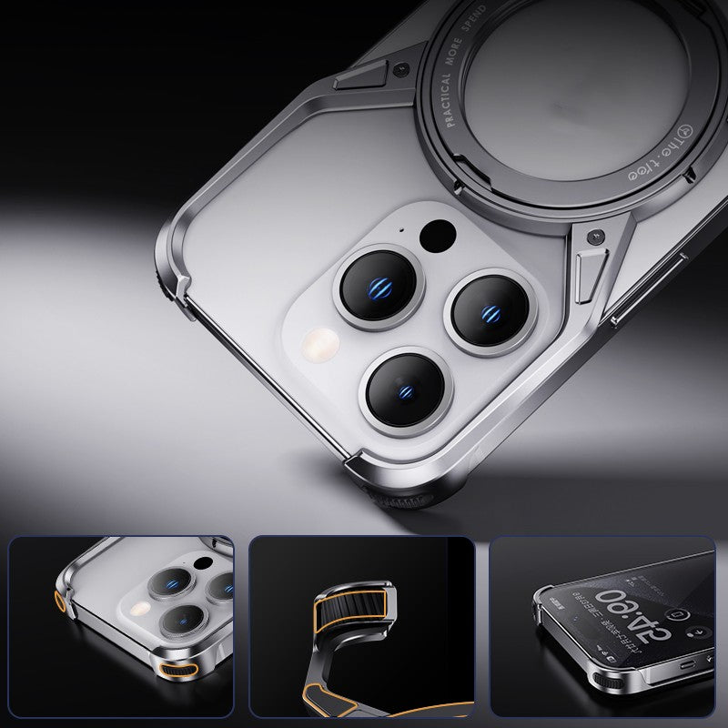 Case For iPhone 16 16 Pro 16 Pro Max Ultra-Thin Shockproof X Shape Aluminum Metal Frameless With 360° Rotating Stand