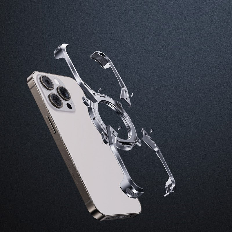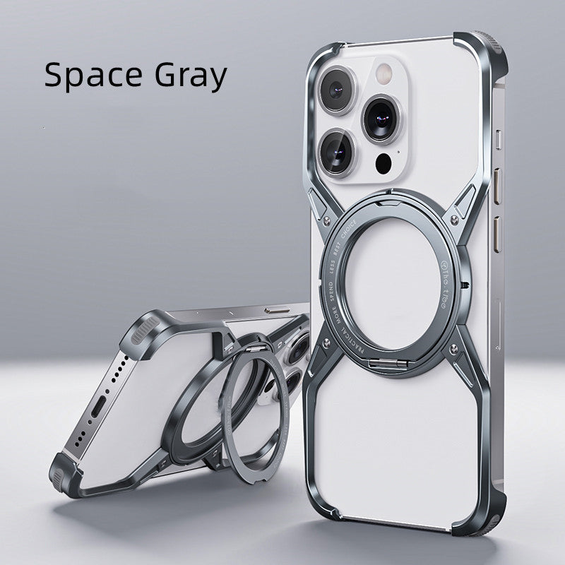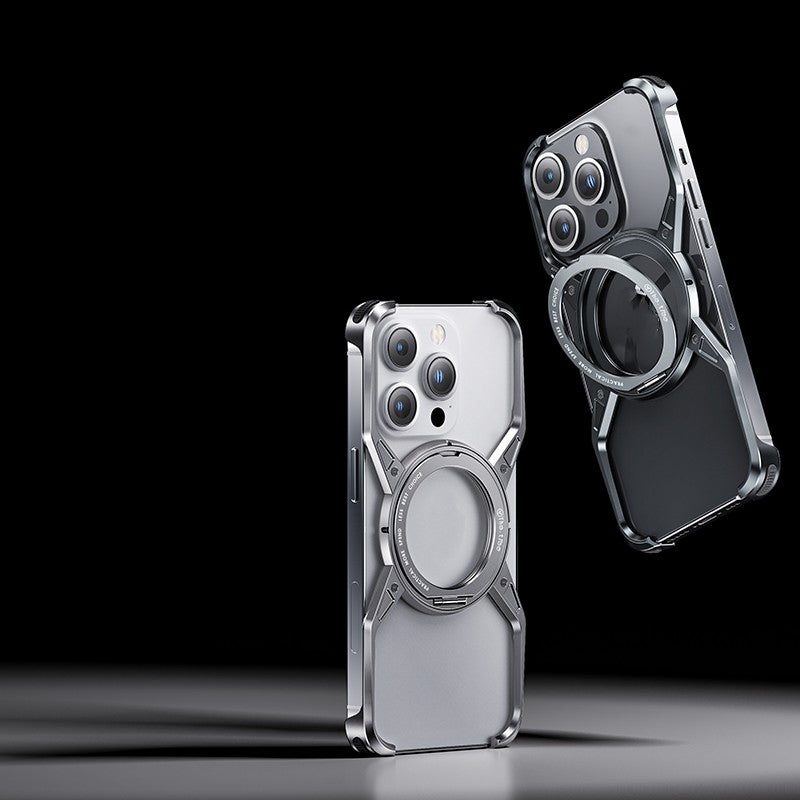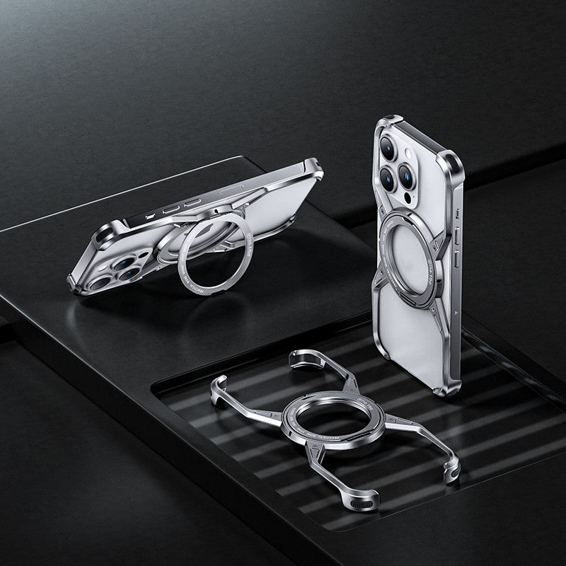 Removable X Type Metal Aluminium Rimless Magnetic Phone Case With 360° Rotation Kickstand For iPhone