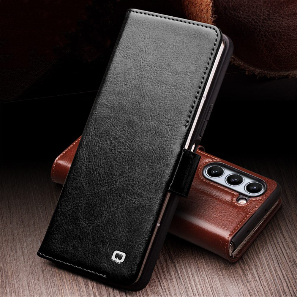 Original QIALINO Genuine Leather Flip Case for Samsung Galaxy Z Fold 5 Fold5 Zfold5 Magnetic Retro Business Holder Wallet Cover