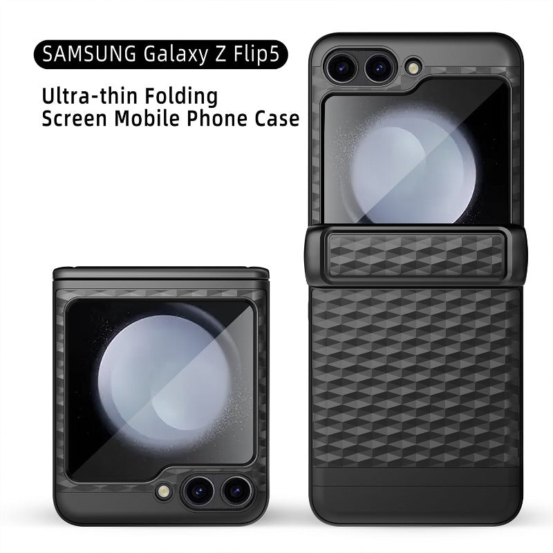 Rhombic Hinge PC Case For Samsung Galaxy Z Flip 5 Full Phone Cover Protective Shell Protection Cases Phone Accessories Tempered Glass Screen Full Protective Folding