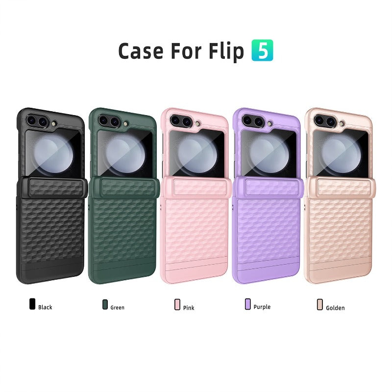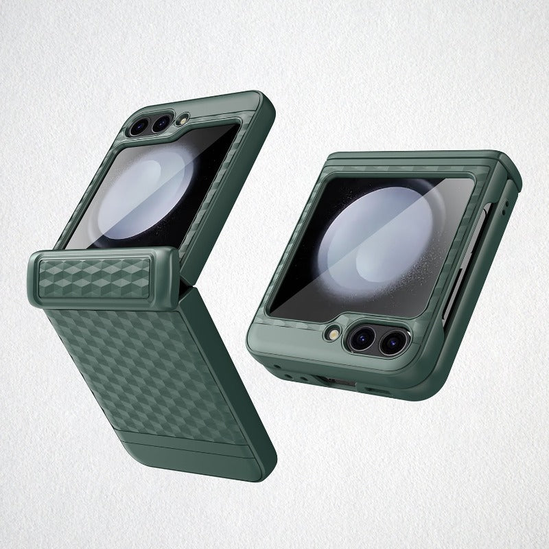 Rhombic Hinge PC Case With Tempered Glass Screen For Samsung Galaxy Z Flip 5