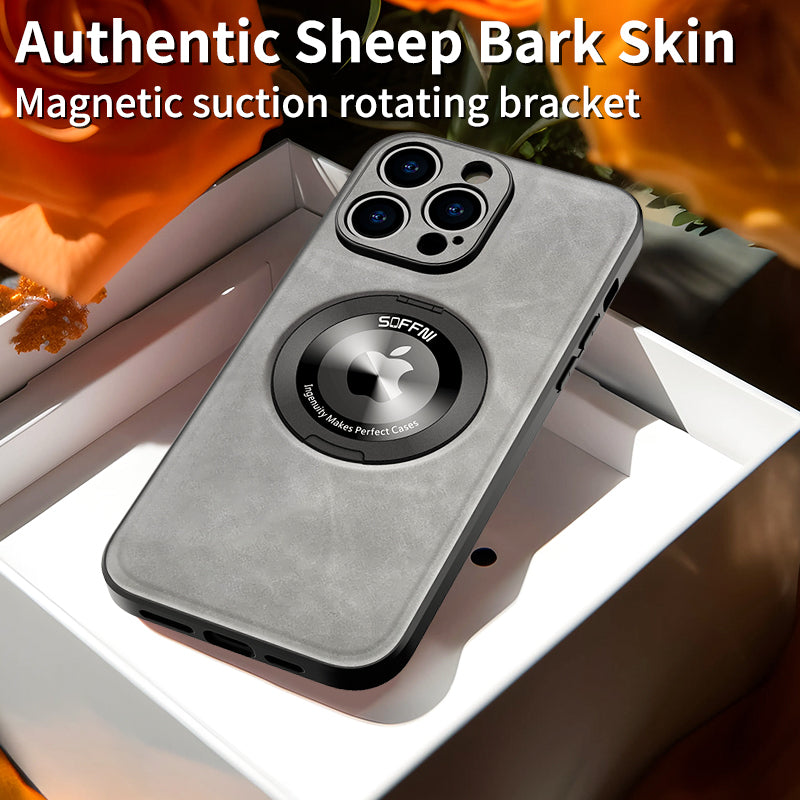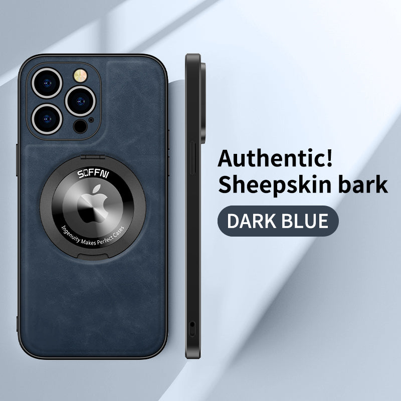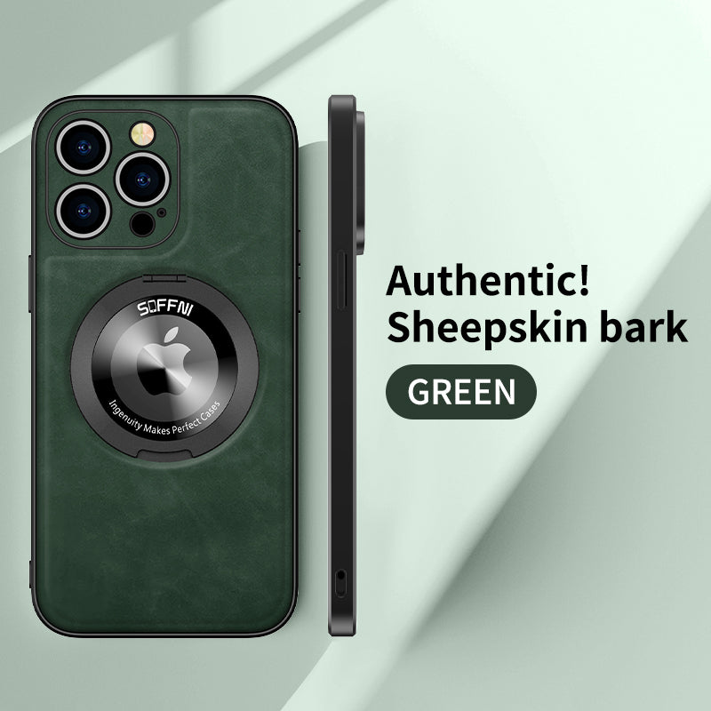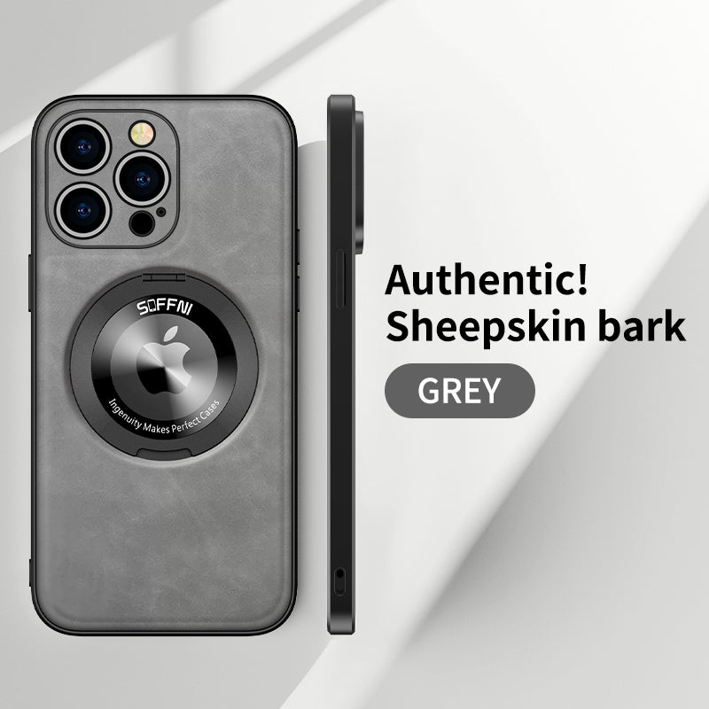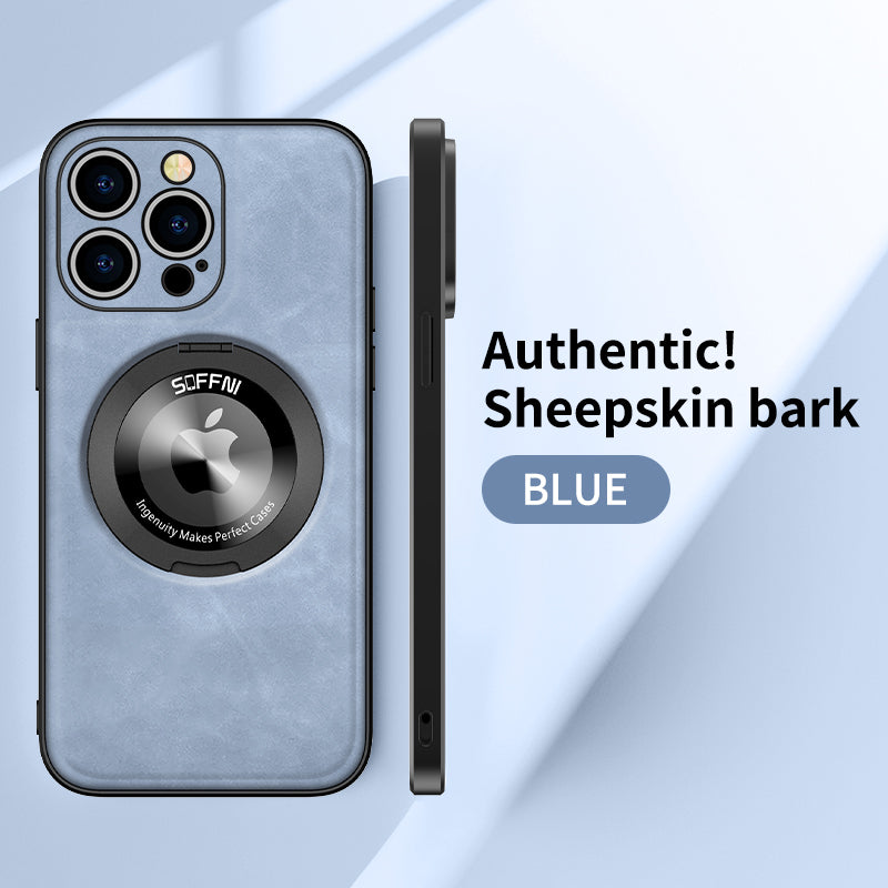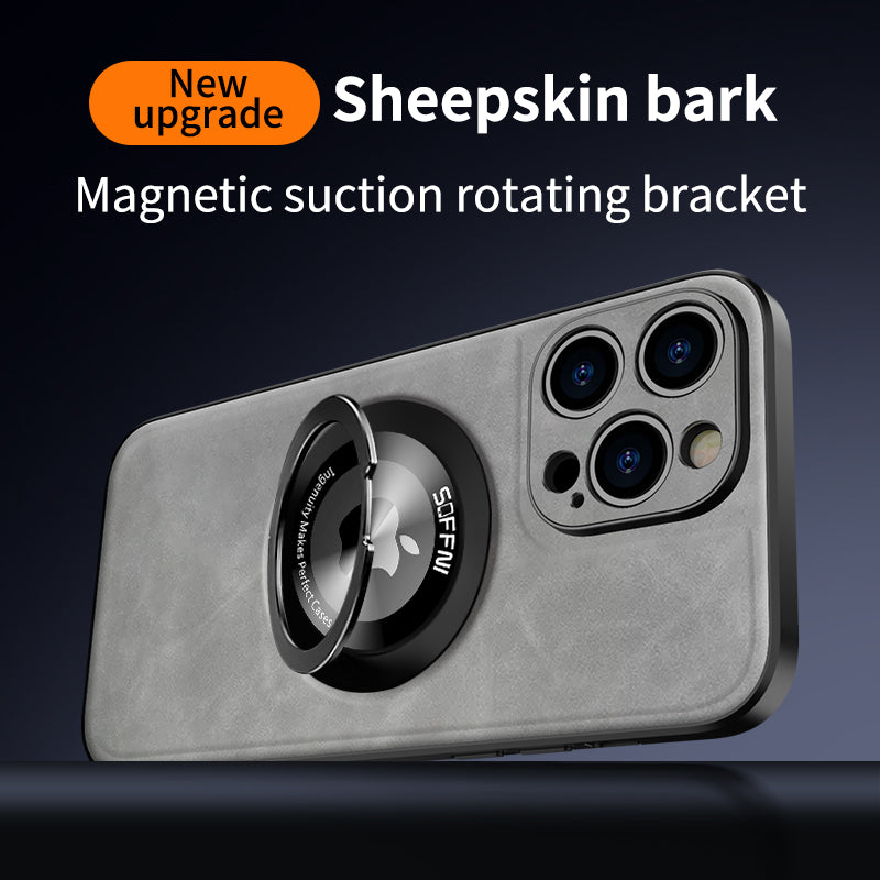 Sheepskin Leather Magsafe Holder Case With Rotating Bracket For iPhone