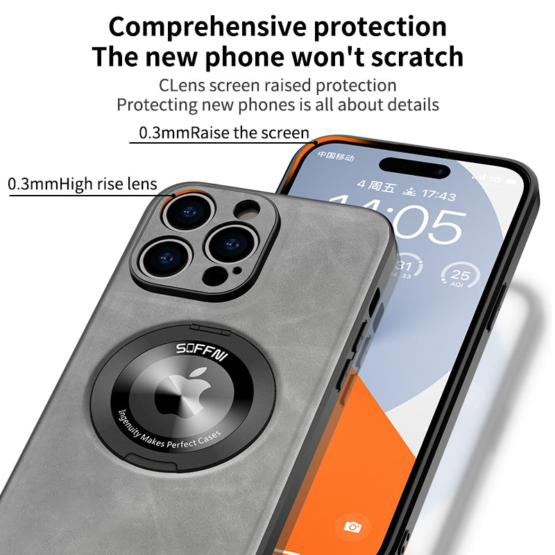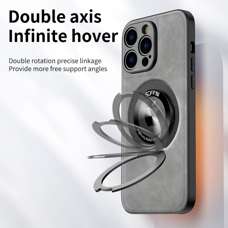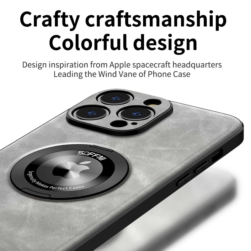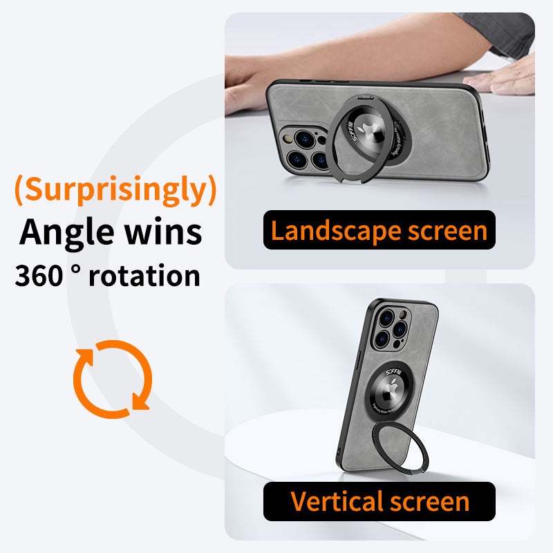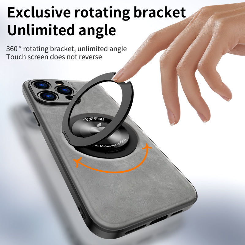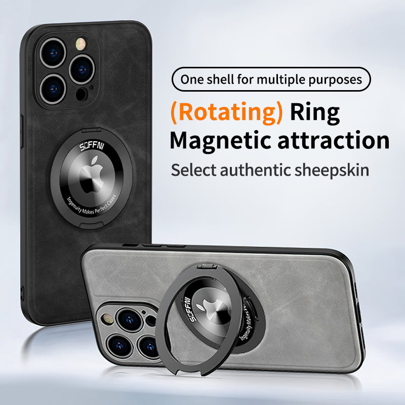 Sheepskin Leather Magsafe Holder Case With Rotating Bracket For iPhone