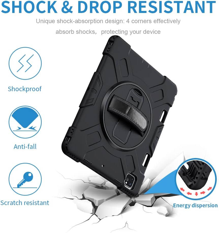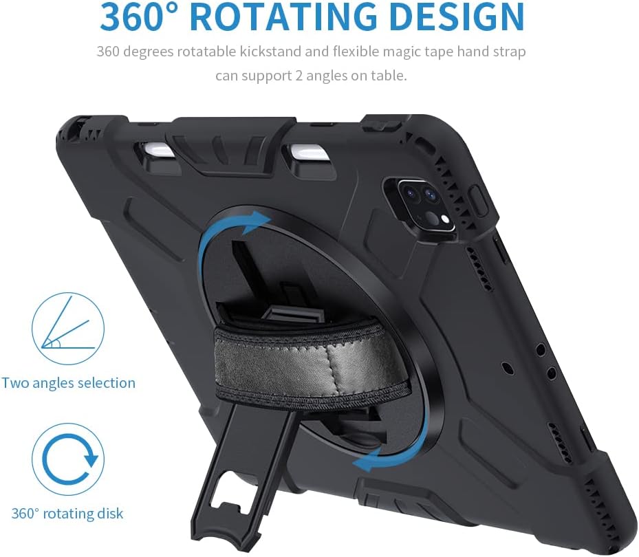 Shockproof Hard Case with 360 Rotating Disc and Armored Case with Hand Strap For iPad Pro 12.9 For iPad Pro 11