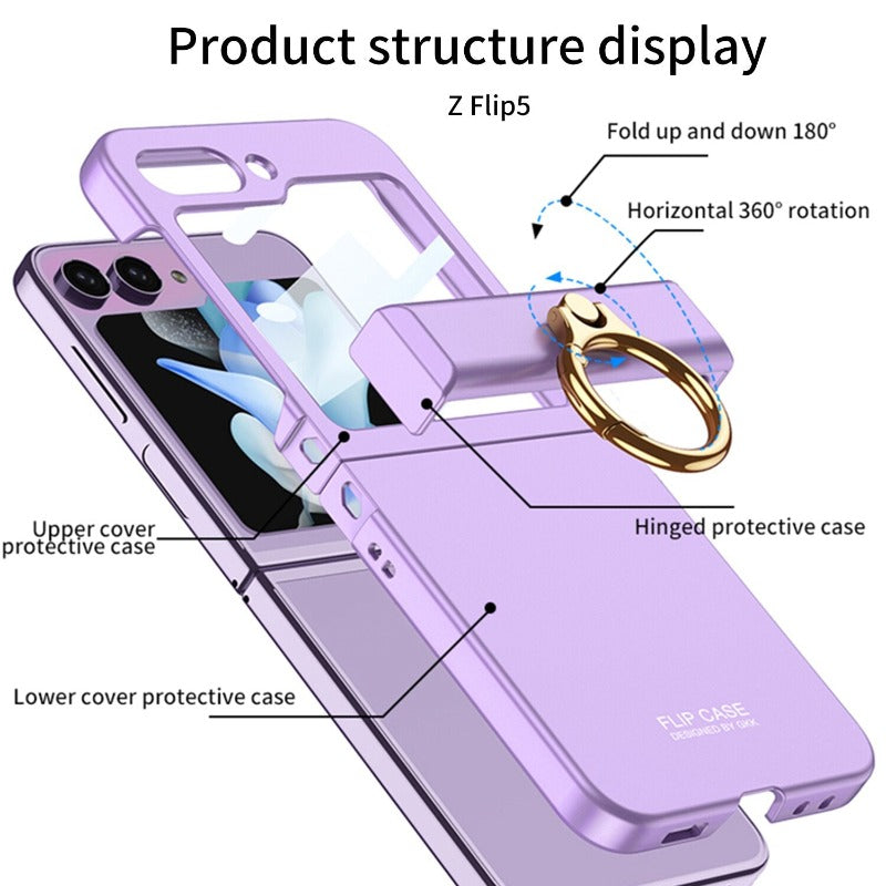 Shockproof Matte Hard PC Phone Case With Ring Holder For Samsung Galaxy Z Flip