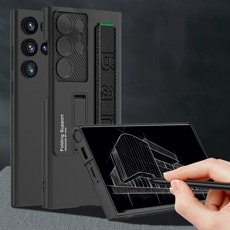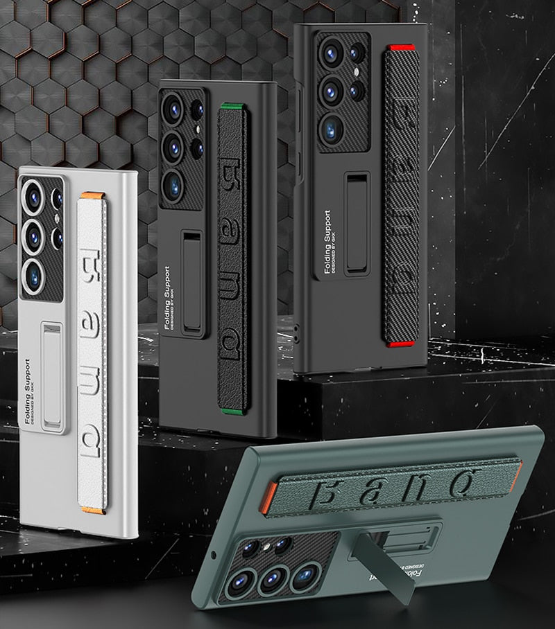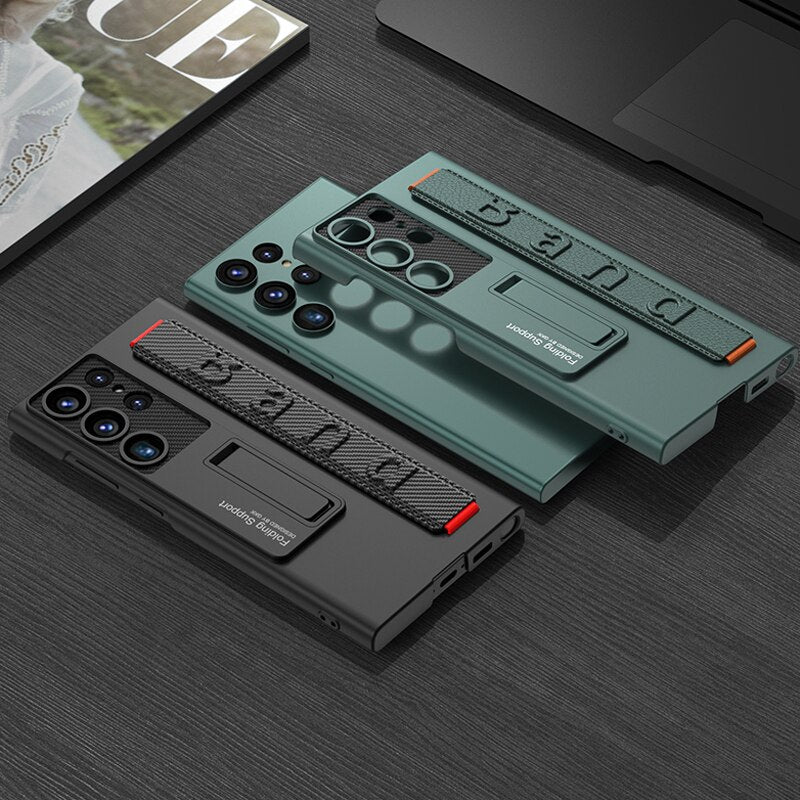Shockproof Matte Phone Case Wristband with Kickstand For Samsung Galaxy S23