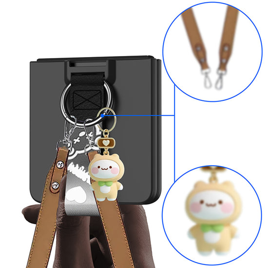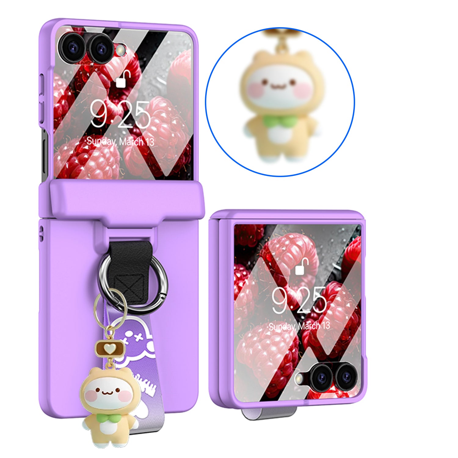 Spring Hinge Ribbon Ring Phone Case With Glass Film Hand Finger Strap For Samsung Galaxy Z Flip 7