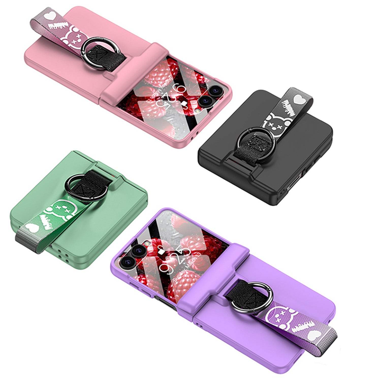 Case For Samsung Galaxy Z Flip 7 Screen Hinge All-Inclusive Protective Glass Film Hand Finger Strap Ring Spring Axis Cover