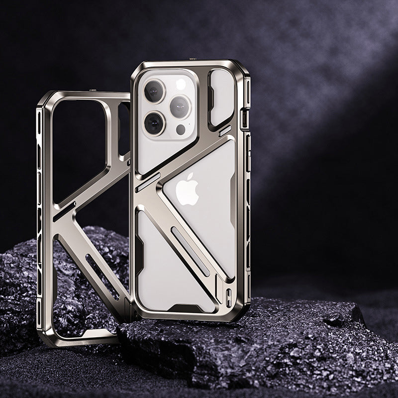 Titanium Alloy Mechanical Armor Hollow Phone Case For iPhone 14 15Pro Max Metal Removable Heat Dissipation Shockproof Hard Cover