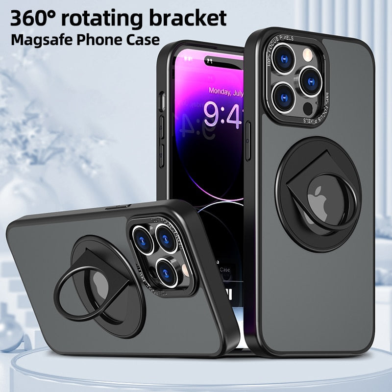 Translucent Matte Magnetic Magsafe Phone Case With 360° Rotating Stand For Samsung
