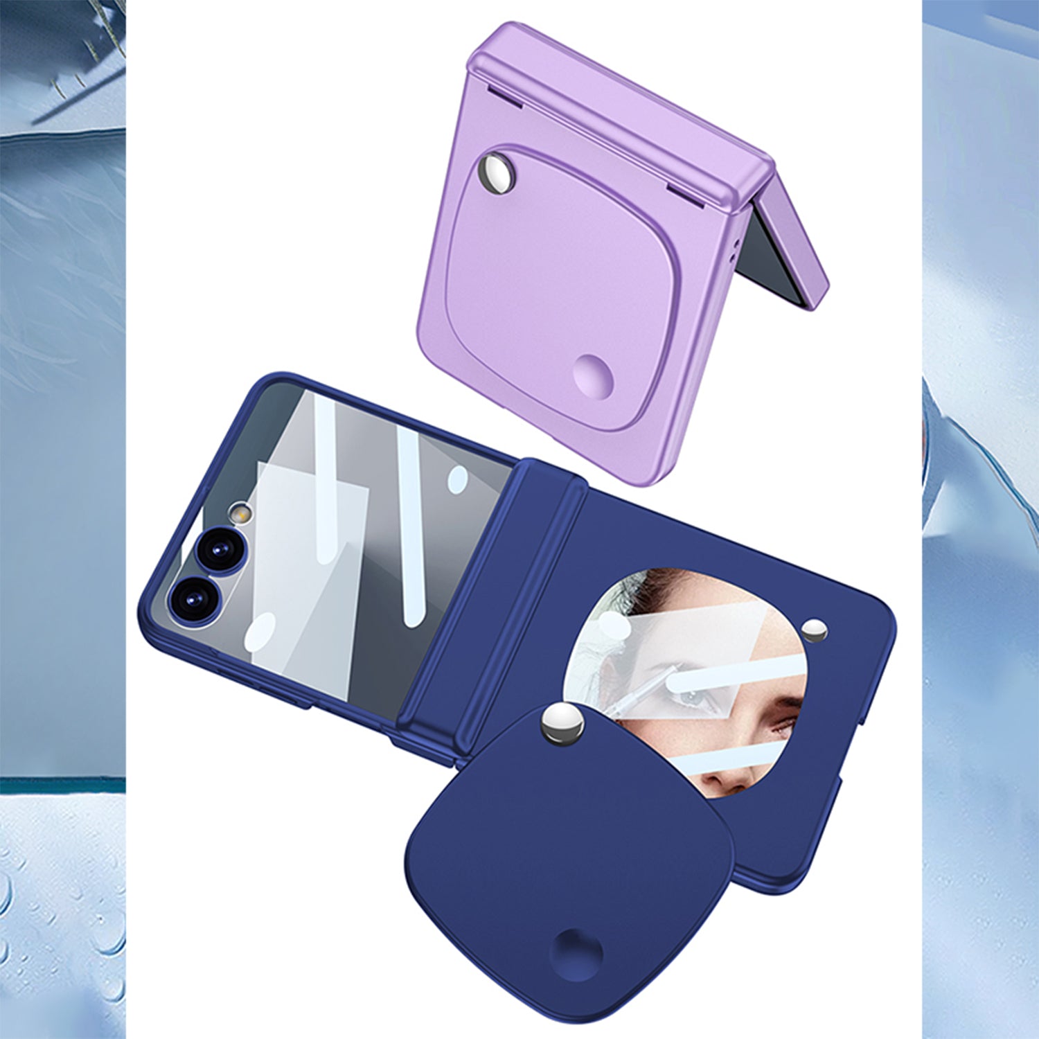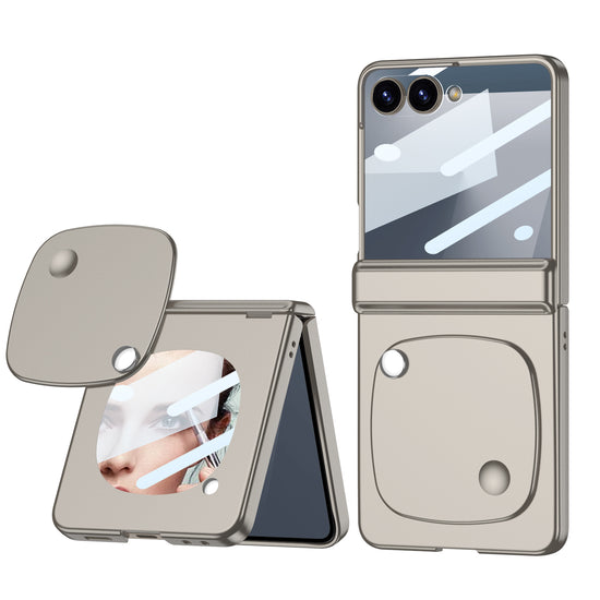 Trendy Dopamine Skin Feel PC Phone Case with Makeup Mirror Glass Screen Protect For Samsung Galaxy Z Flip 7 6