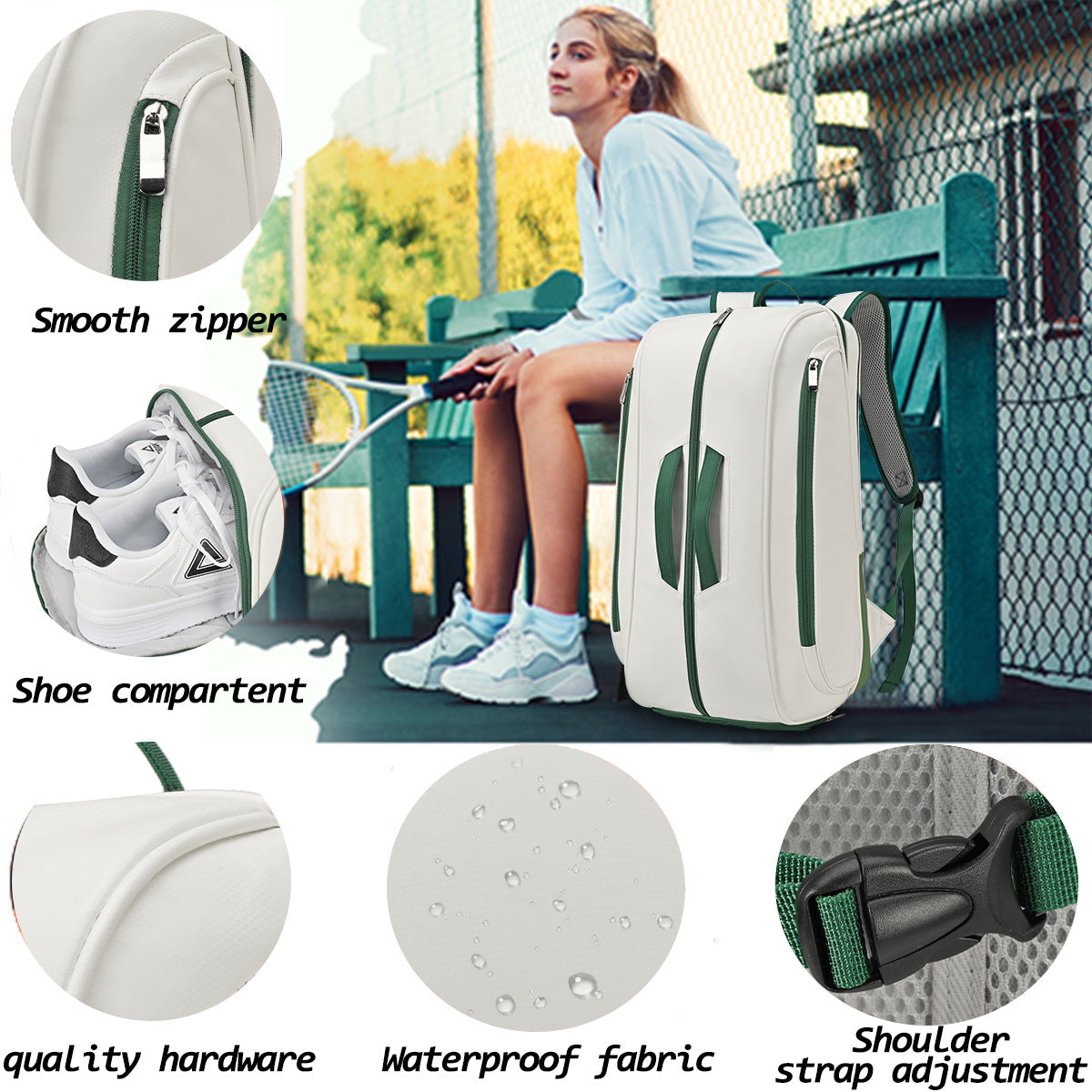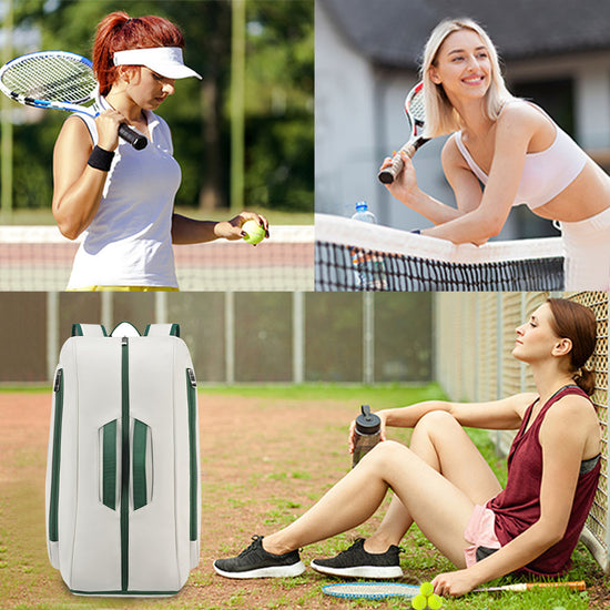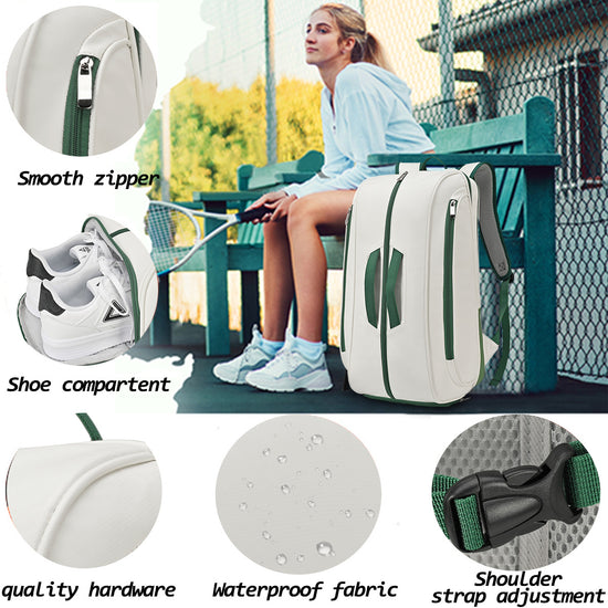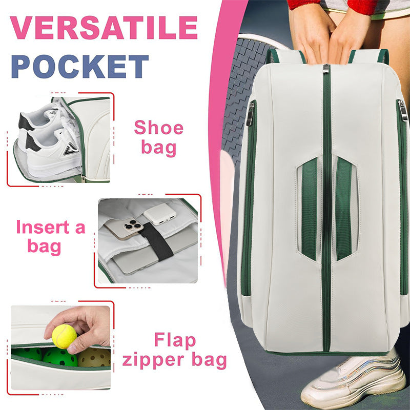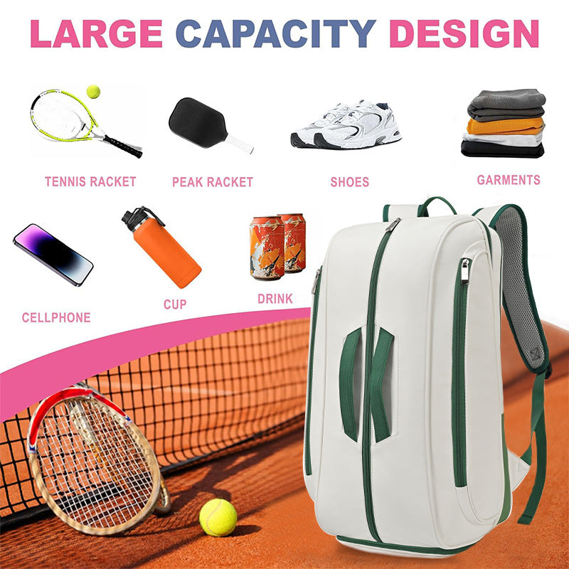 Trendy Outdoor Tennis Bag Large Capacity Racket Backpack Luxury Festival Gift Badminton Bag Multi Function Pickleball Bag Waterproof PU Leather Racket Backpack With Shoe Compartment Sports Backpack For Tennis Pickleball Padel Backpack