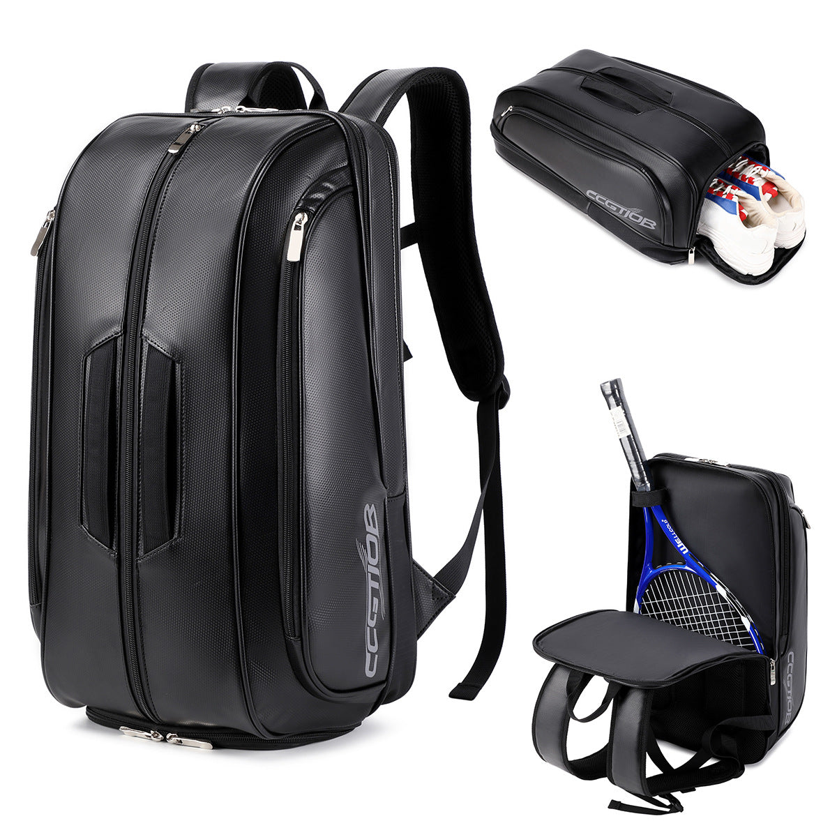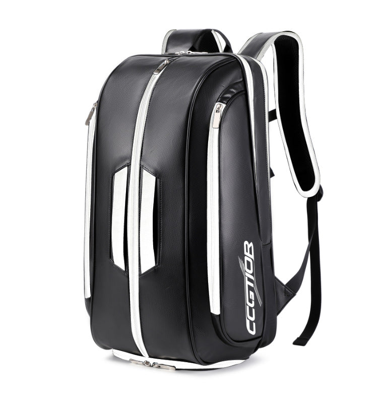 Trendy Outdoor Tennis Bag Large Capacity Waterproof PU Leather Racket Backpack With Shoe Compartment Double Shoulder Bag