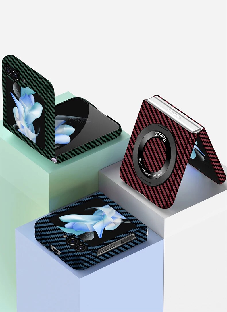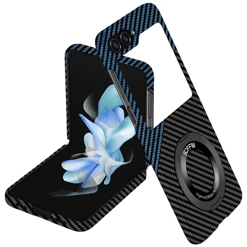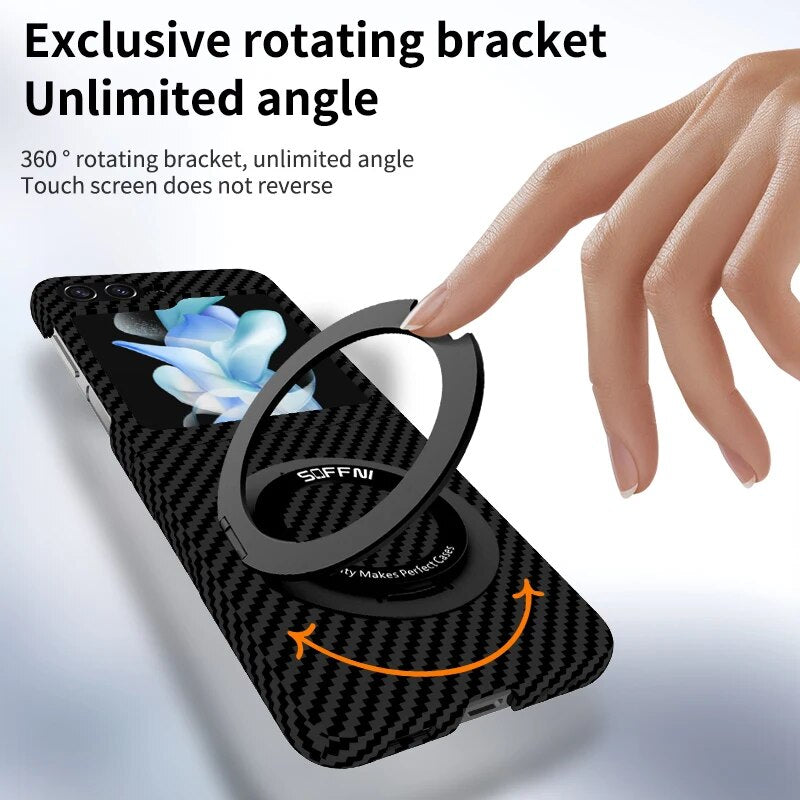Ultra Thin Carbon Fiber 360 ° Magnetic Ring Holder Foldable Phone Case With Screen Protection For Samsung Z Flip 5