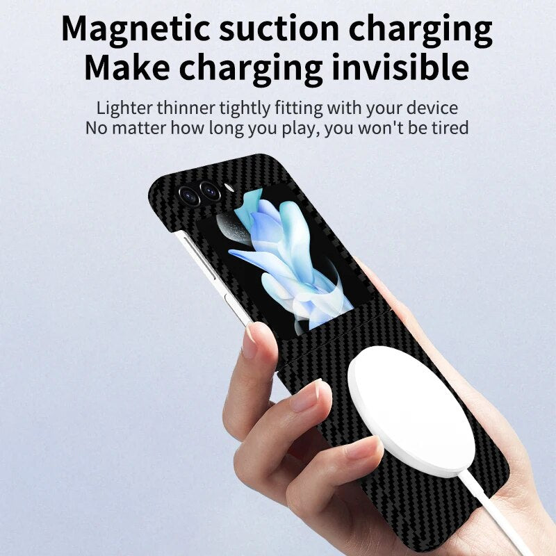 Magnetic Carbon Fiber Folding Phone Case for Samsung ZFlip5 360 ° Rotating Ring Stand Cover for Galaxy Flip5