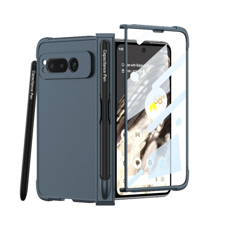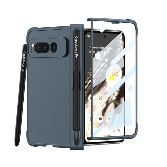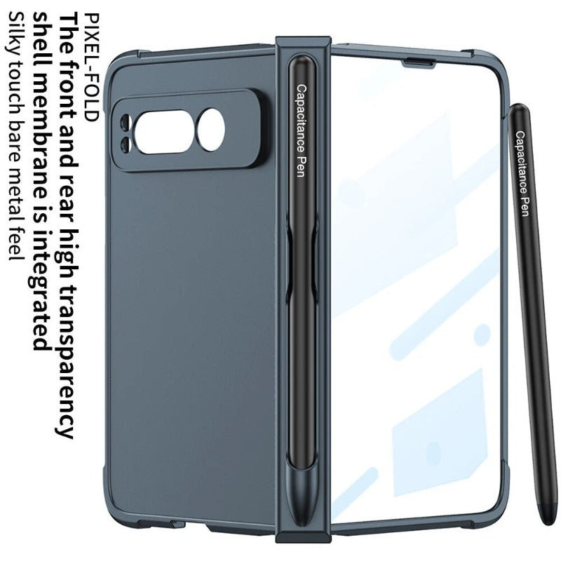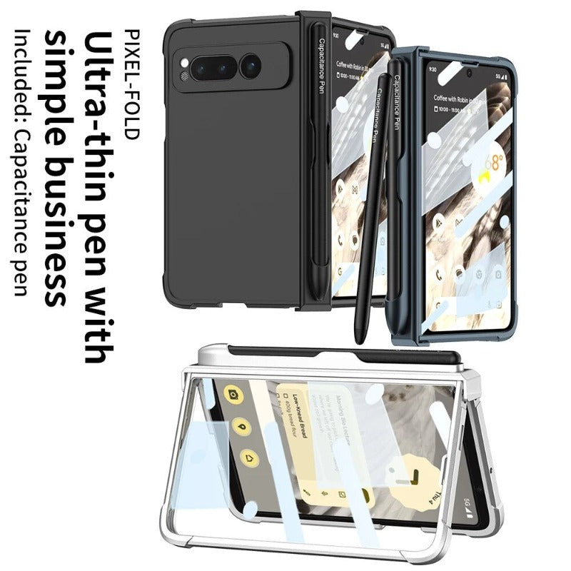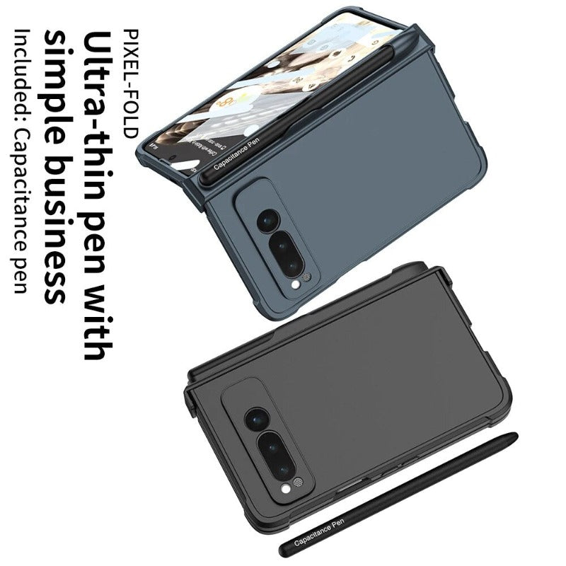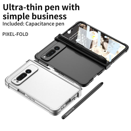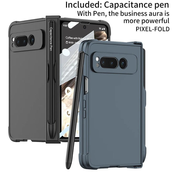 Skin Feel with Pen Case for Google Pixel Fold 360 All Inclusived HD Tempered Glass Film Ultra-thin Simple Business Protect Cover